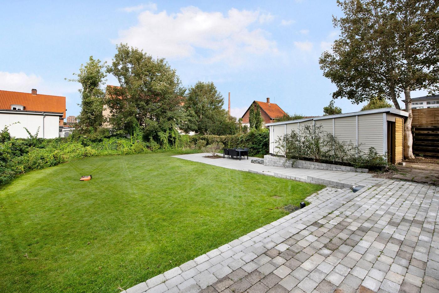 Vi befinder os centralt i Hillerød, på en rolig og charmerende villavej, som ligger ugeneret tilbagetrukket, men alligevel i gåafstand til byens stemningsfyldte gågade, Slotsarkaderne og Torvet, der alt sammen lokker med gode butikker, spisesteder og hyggelige cafeer. Imens danner Frederiksberg Slot med Slotssøen og Slotshaven centrum for det stemningsfyldte miljø og det fineste baggrundsbillede for byens liv. Hillerød byder endvidere på den skønneste natur og så er der s-togsforbindelser direkte til København, hvilket gør byen super attraktiv.