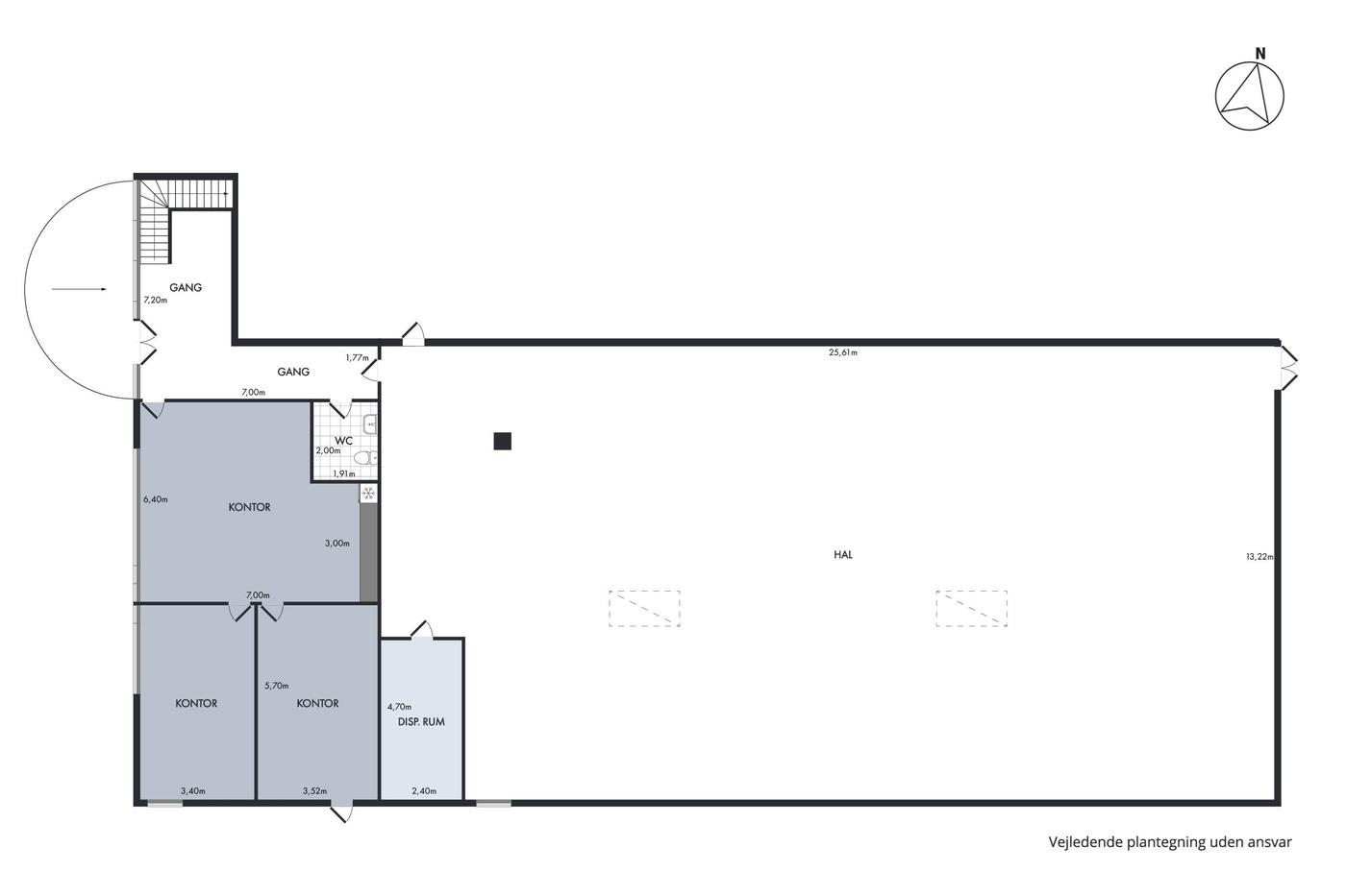 Ved leje af disse kontorlokaler får I 90 kvadratmeter, som består af stort lokale og 2 mindre kontorer. Derudover eget toilet samt mulighed for at benytte fælles køkken til større møder mv. Det hele ligger i en moderne og præsentabel bygning fra 2002, og indendøre bydes i velkommen i en imponerende hall, hvilket vil skabe et godt førstehåndsindtryk for fremtidige kunder og gæster.