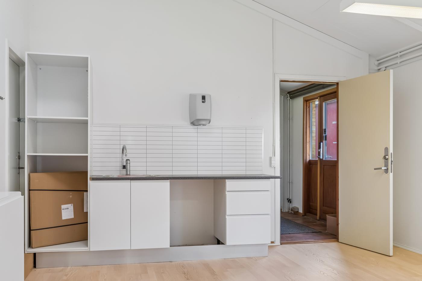 Lejemålet fremstår lyst og indbydende med en praktisk planløsning, der omfatter entré, badeværelse, køkkenfaciliteter samt to regulære kontorrum. Indretningen giver gode muligheder for både klassisk kontoropdeling eller et mere åbent og fleksibelt arbejdsmiljø, afhængigt af lejers behov.