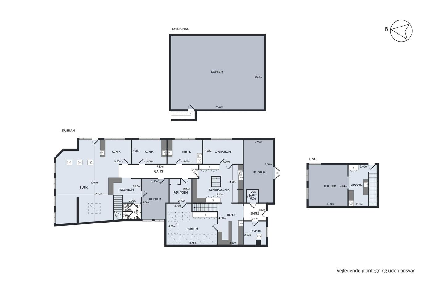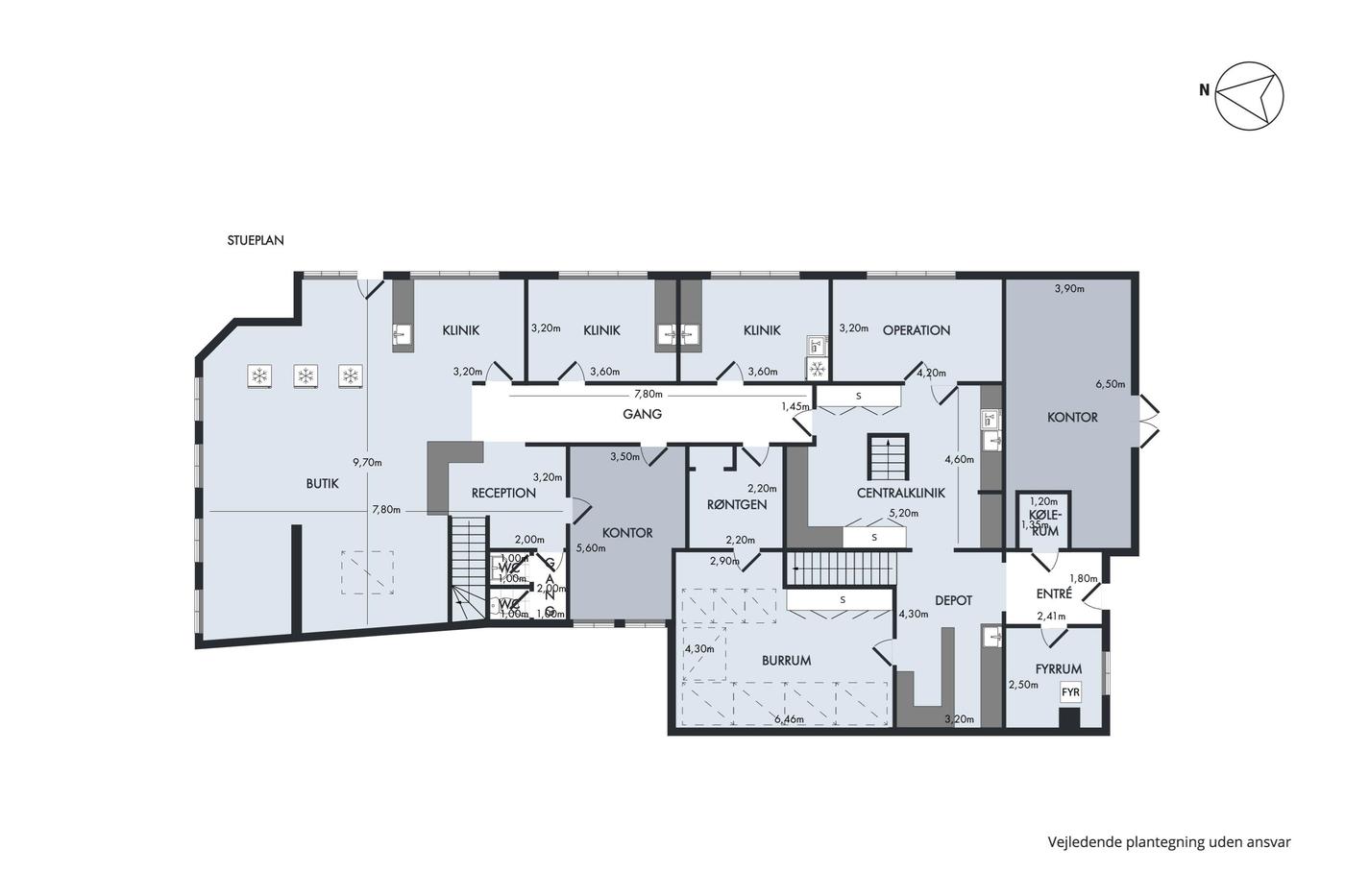 Beliggenheden er ligeledes god, for ejendommen placerer sig trygt og godt i Birkerød blandt rolige parcelhuskvarterer og villaveje. Er kunderne i bil, kan de glæde sig over de gode tilkørselsforhold og nemme parkeringsmuligheder, hvor der bag ejendommen venter en rummelig parkeringsplads. I gåafstand til klinikken finder I desuden Birkerød Station, hvorfra både besøgende og medarbejdere er godt forbundne til det resterende Storkøbenhavn.