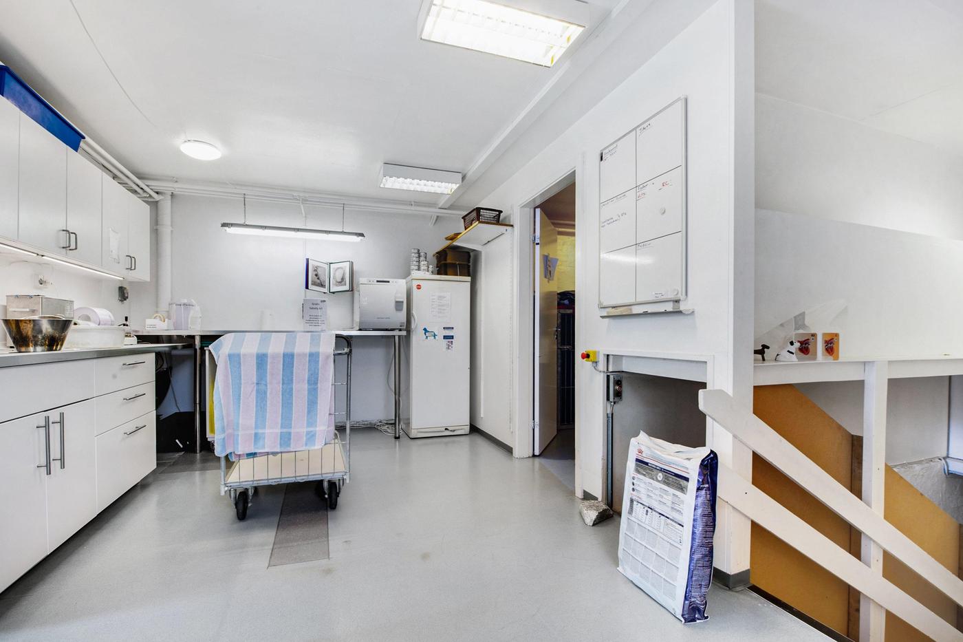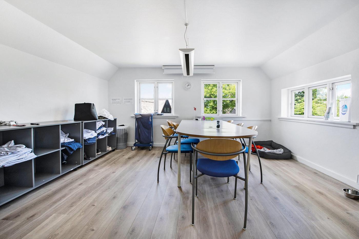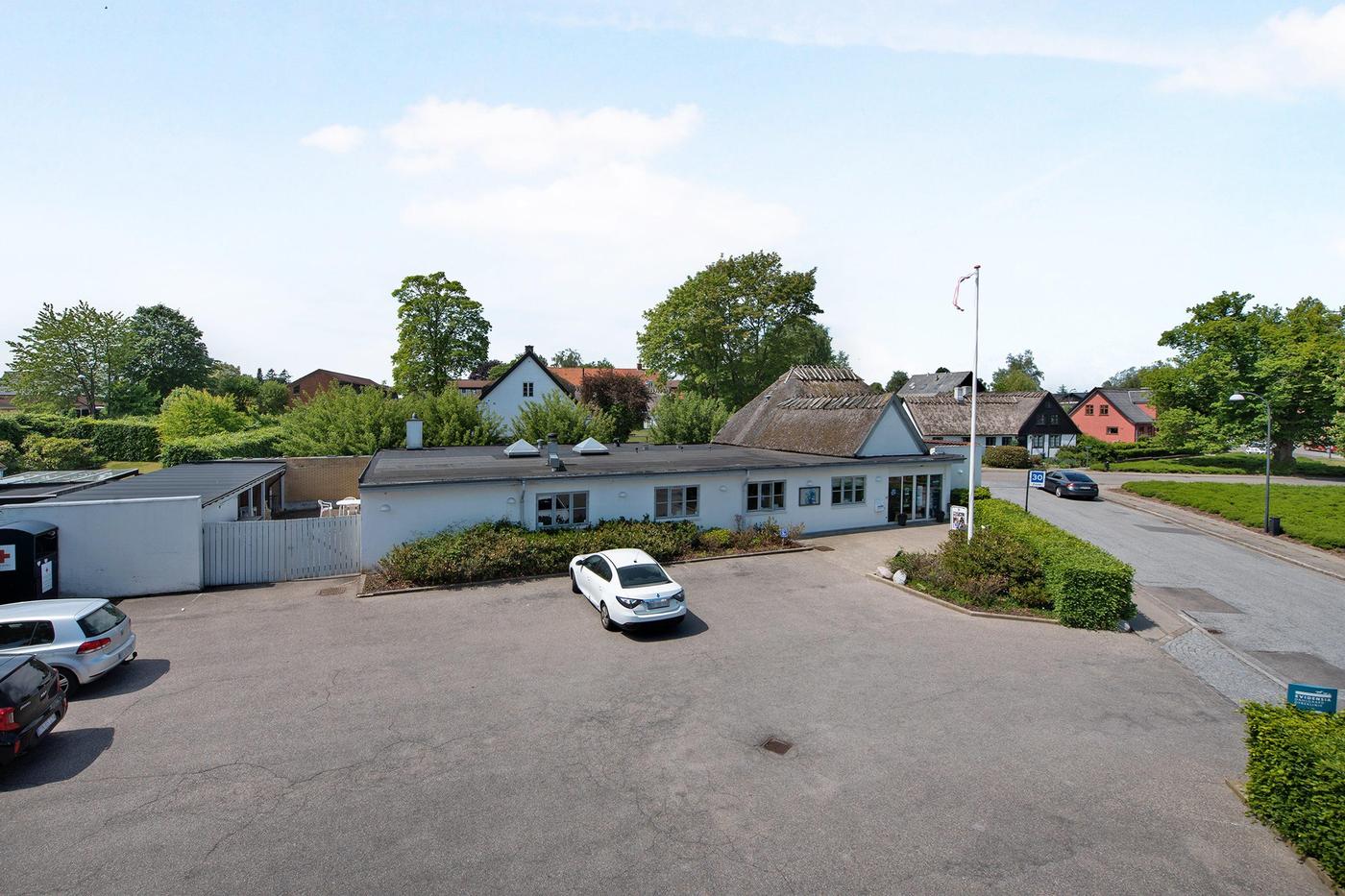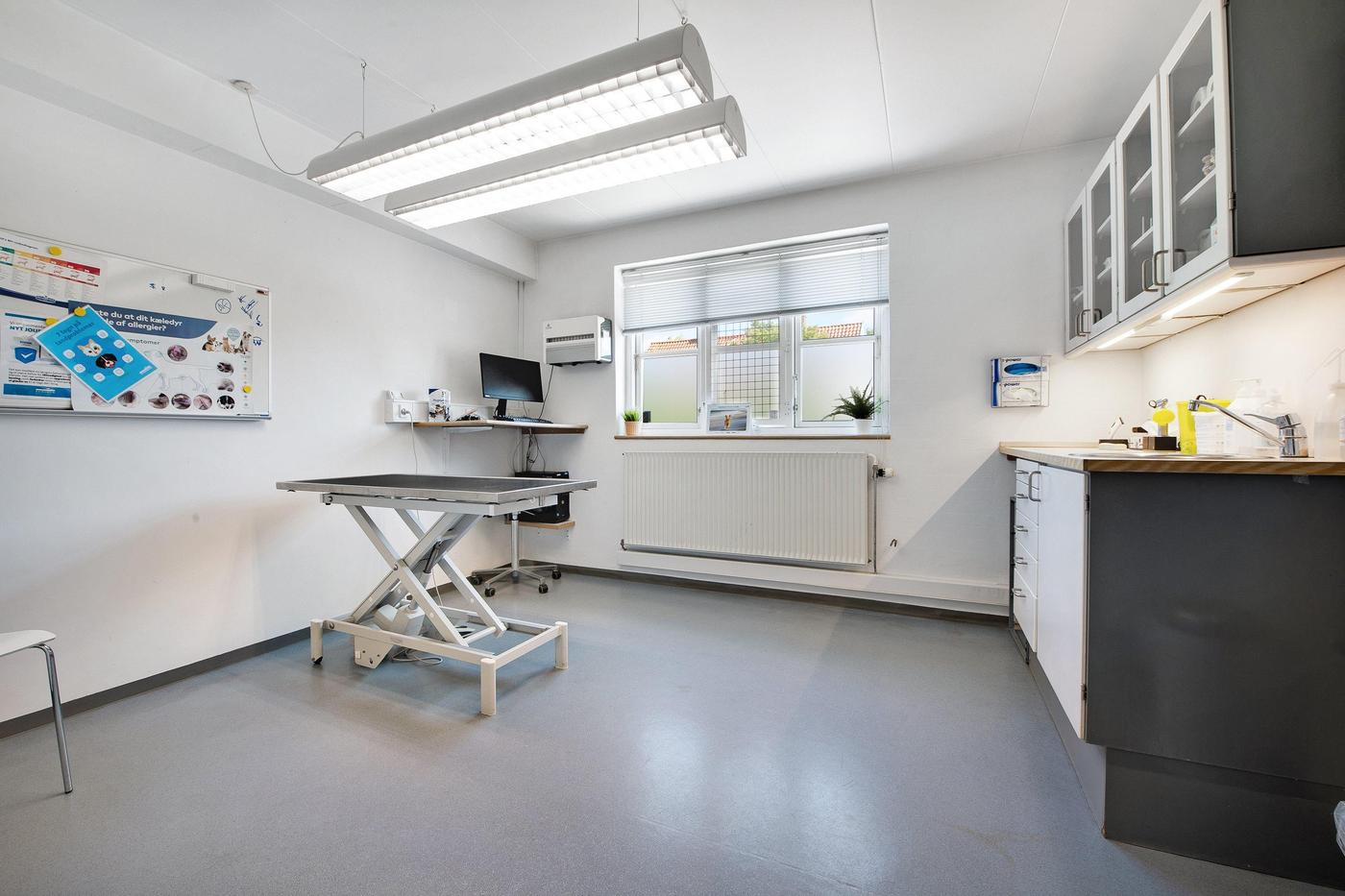Ejendommen kan dateres tilbage til 1887, hvor facaden ses med hvidrammede sprossevinduer og stråtag. Den fine alder kan dog ikke mærkes hverken ude eller inde, da der er sørget for løbende vedligeholdelse. Indendørs venter en veltænkt planløsning med en god indretning, som er tilpasset den nuværende lejer. Der er her tale om en dyreklinik med et godt indgangs- og receptionsområde samt en række kliniklokaler, møderum, venteområder og selvfølgelig også de mere praktiske områder med køkken og toilet. Lokalerne er gennemgående lyse takket være de skønne sprossevinduer, der sørger for et indbydende og luftigt indre; og da det er løbende vedligeholdt, skal I ikke påtænke yderligere tid eller penge på istandsættelse.
