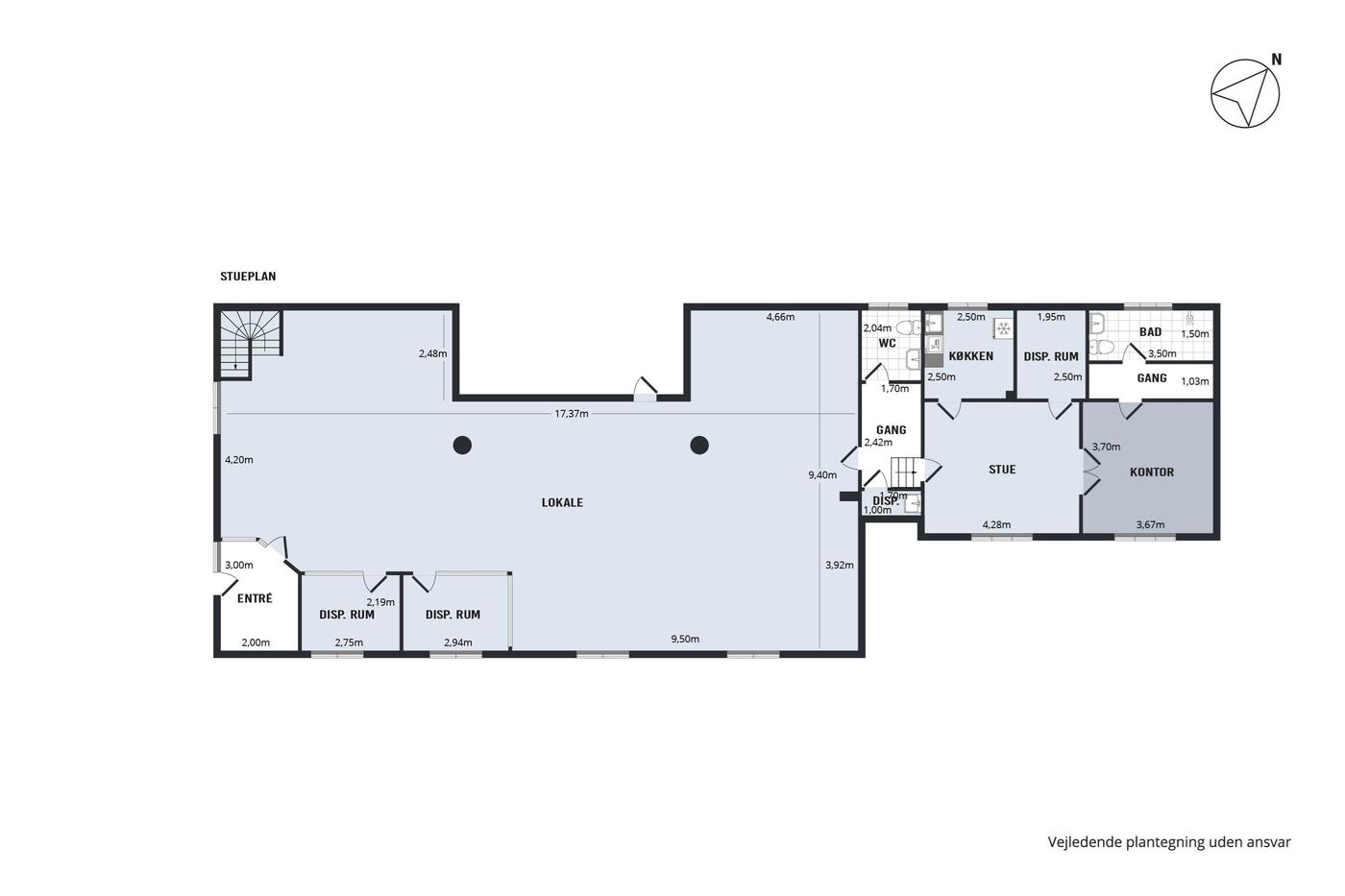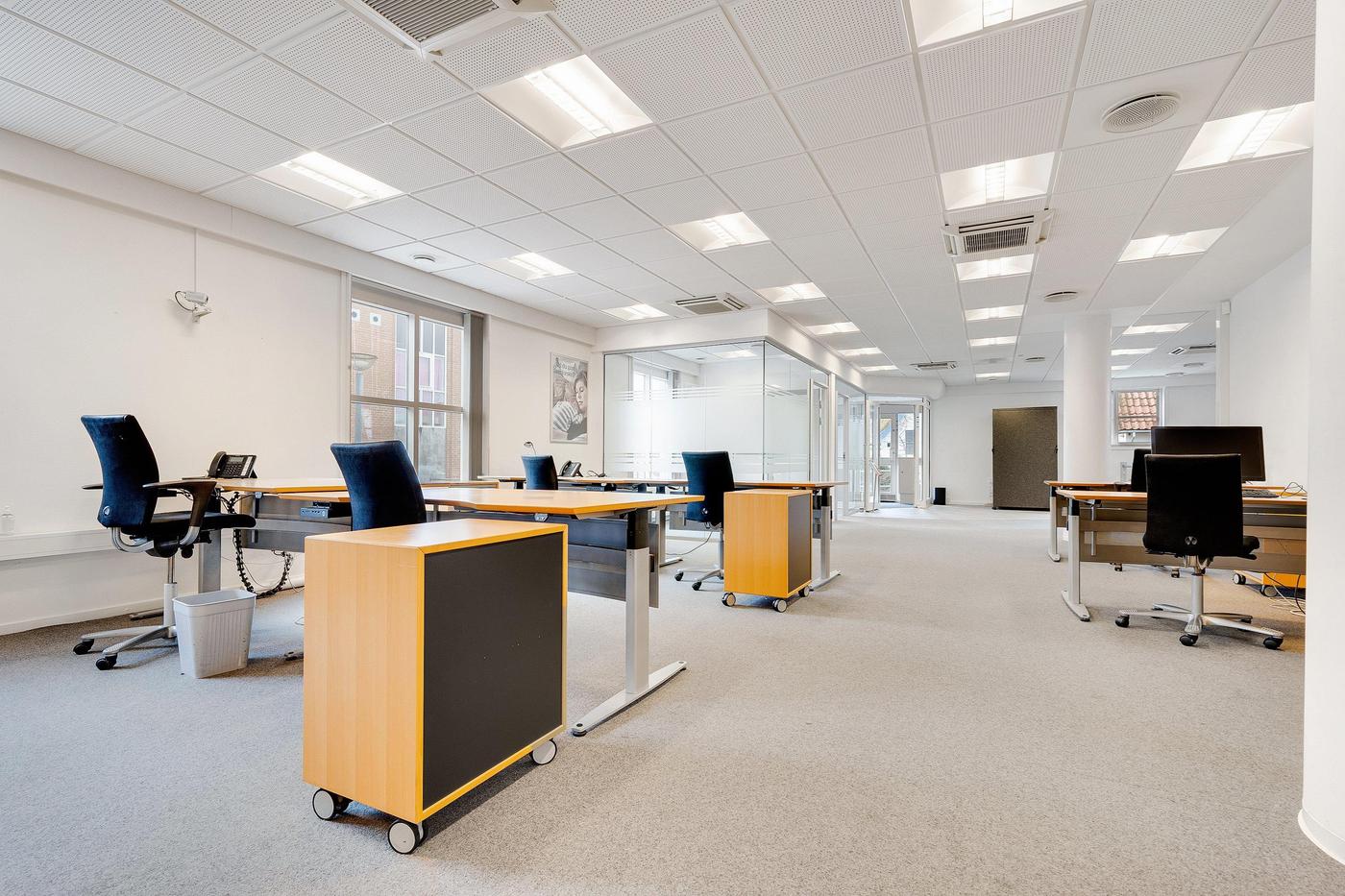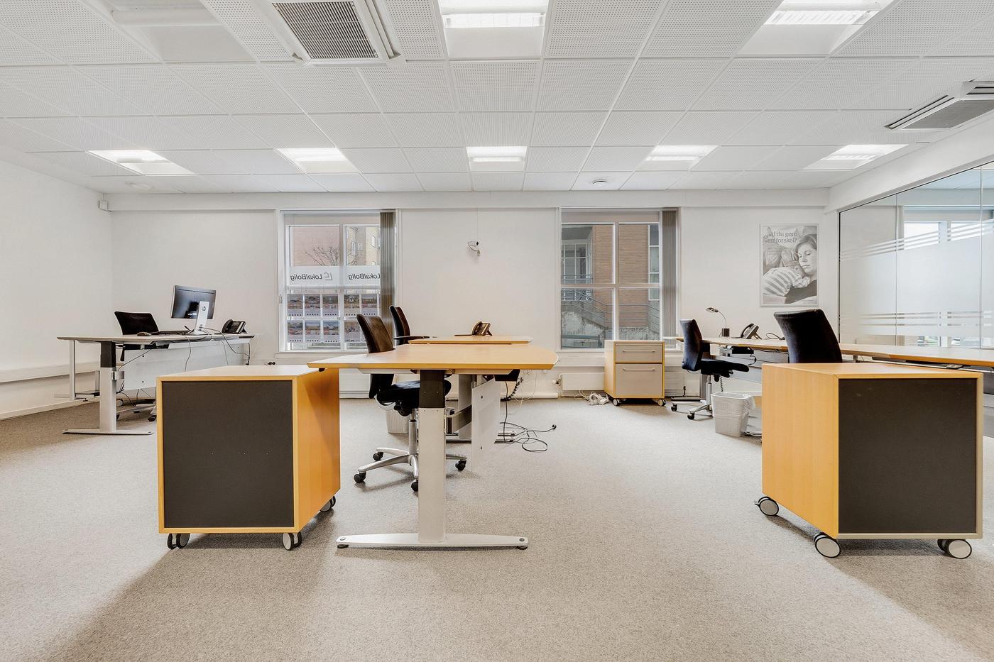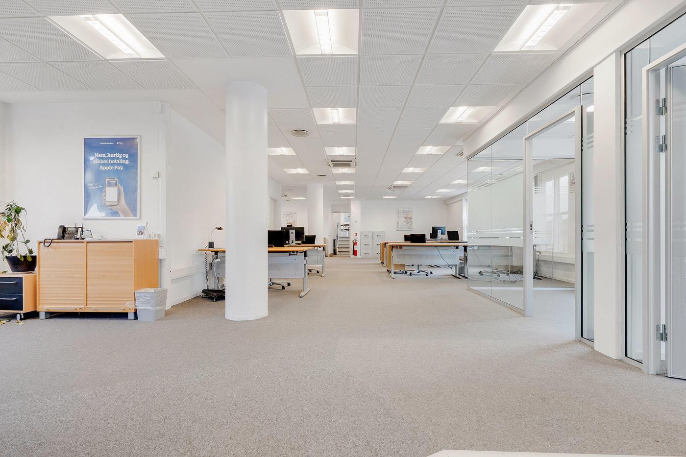 Fra entréen får I direkte adgang til det store lokale, der giver jer et hav af muligheder. Her kan I indrette jer med ét stort, åbent kontorlandskab, mens der også her er mulighed for at dele lokalet op i mindre sektioner. I lokalet sørger glasvægge allerede nu for at separere to lokaler fra resten af rummet, og her kan man holde møder eller søge arbejdsro for en stund.