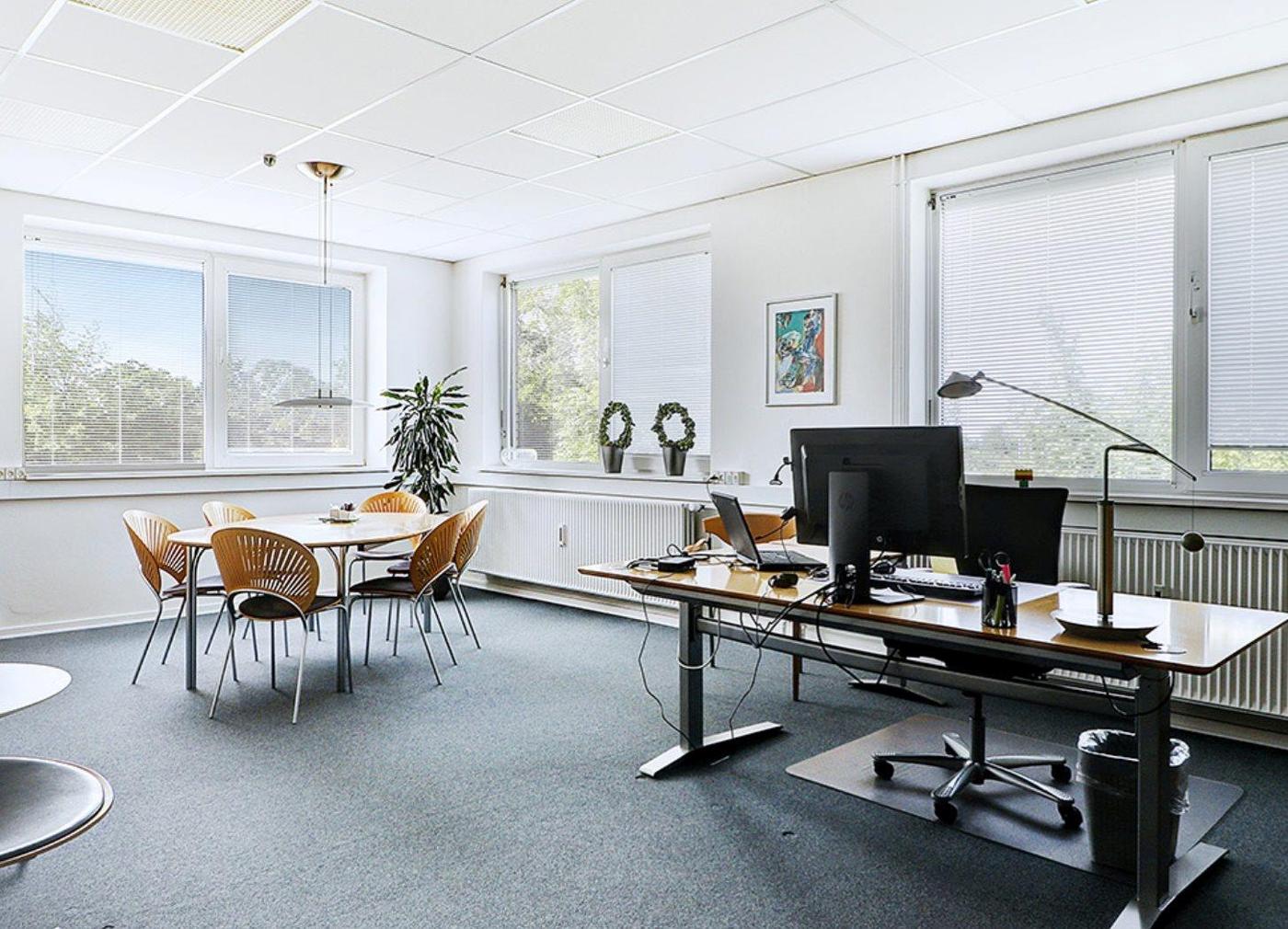 Kontorerne på 1. & 2. sal er indrettet i varierende størrelser, og gulvene er belagt med tæpper.