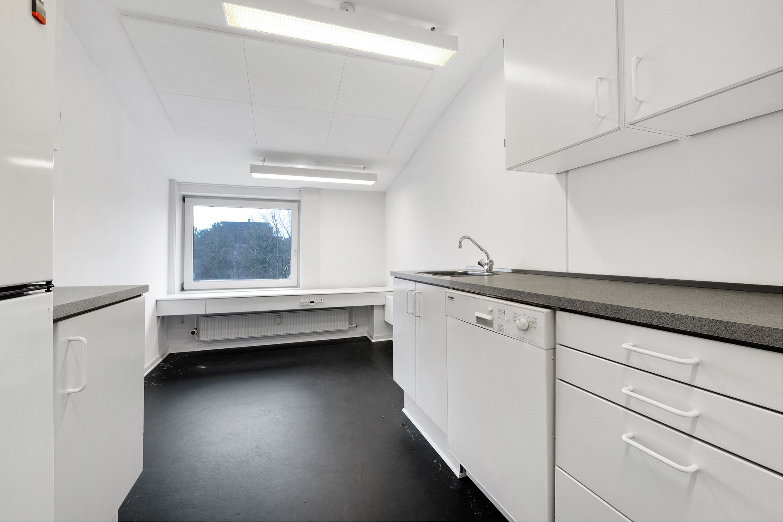 Hvis I søger nye rammer til arbejdspladsen, kan de således udskiftes til at blive en del af ikke mindre end 24 kontorer i vekslende størrelser, som fordeles af et langt gangareal. Hvert og ét af de nydelige og møblerbare kontorer er udstyret med et godt lysindfald; og hertil enten lukket eller med glaspartier for et åbent og velkommende udtryk. Endvidere finder I toiletter fordelt i hver sin ende samt midtpå, ligesom kaffekoppen kan fyldes i et af de to køkkener, der hører til lejemålet. Og med opvaskemaskine, ovn og rigtig god opbevaringsplads er der mulighed for både at anrette bagværk til møder samt let madlavning efter behov. Det hele er indbydende, velholdt og up to date, og så bliver hverdagen bare dét mere praktisk af, at her er elevator. Der er netop opsat ny solafskærmning på ejendommen.