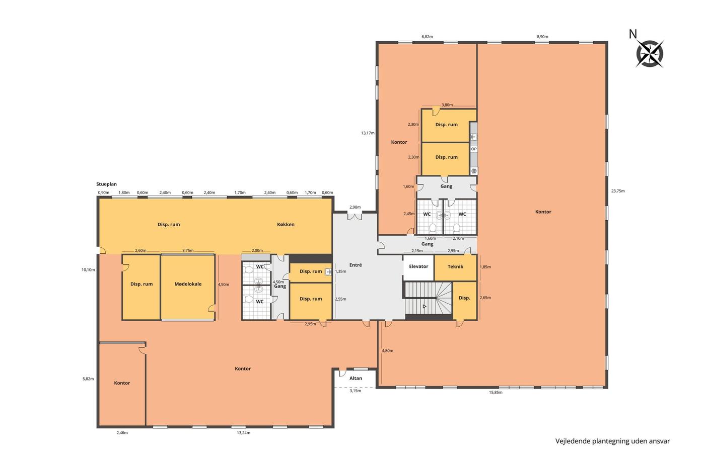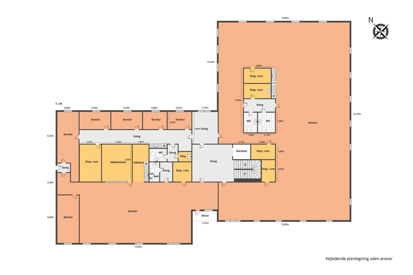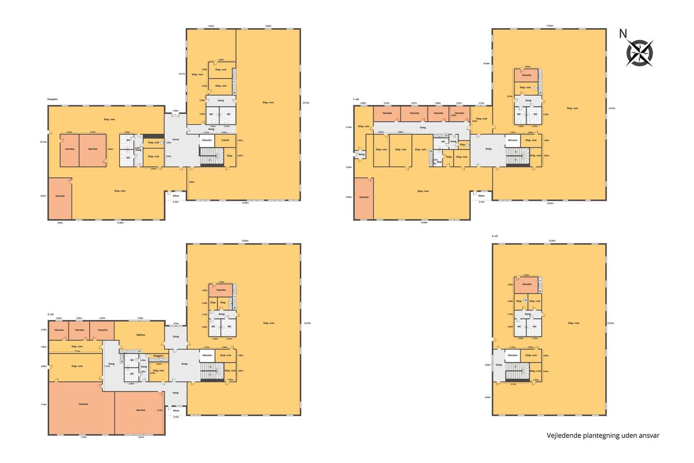 Ejendommen kan enten lejes som en samlet stor enhed og dermed anvendes som et stort kontordomicil, alternativt kan ejendommen lejes i mindre enheder.