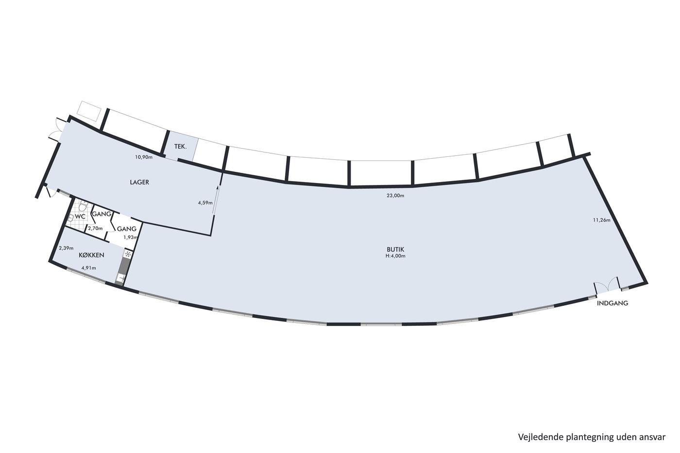 Butikslokalet er lyst og venligt med gode indretningsmuligheder, hvilket gør det ideelt til detailhandel, showroom eller specialforretning. Den store facade med udstillingsvinduer giver optimale muligheder for at præsentere varer og tiltrække forbipasserende kunder.