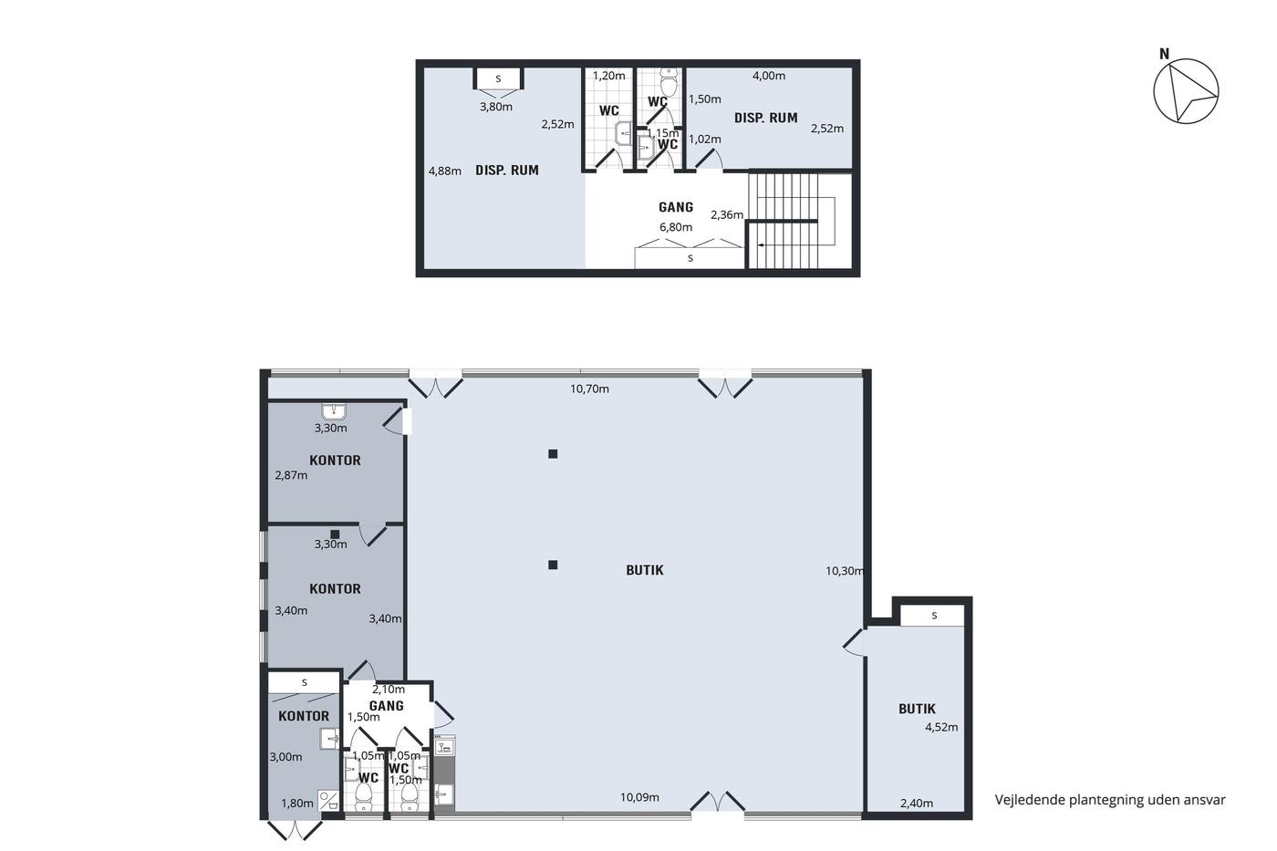 Bag de store facadevinduer og hoveddøren venter der jer en flot og indbydende butik. Størstedelen af ejendommen udgøres af et stort lokale, hvor der er masser af plads til hyldevarer, stativer, prøverum og betalingsdisk - alt, hvad butikken har brug for. Standen er gennemgående god, både i det store og det mindre butikslokale, i de tre kontorer og på toiletterne. Foruden stueetagen findes en praktisk kælder med yderligere toiletfaciliteter og to disponible rum, der egner sig perfekt til ekstra opbevaring.