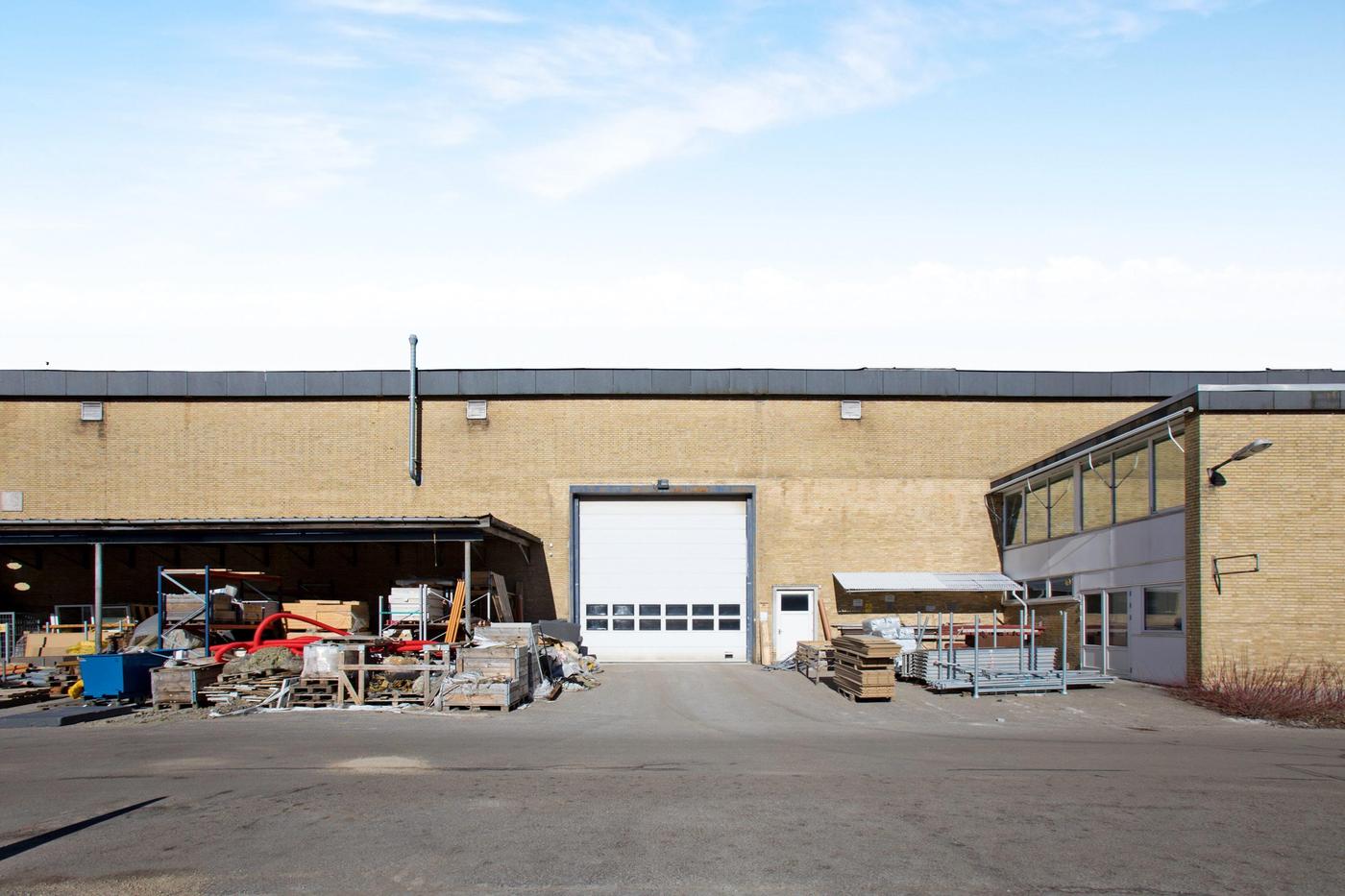 Bag den store lagerbygning er der en bred port, som gør det muligt let og problemløst at fragte varer både ind og ud af lageret.