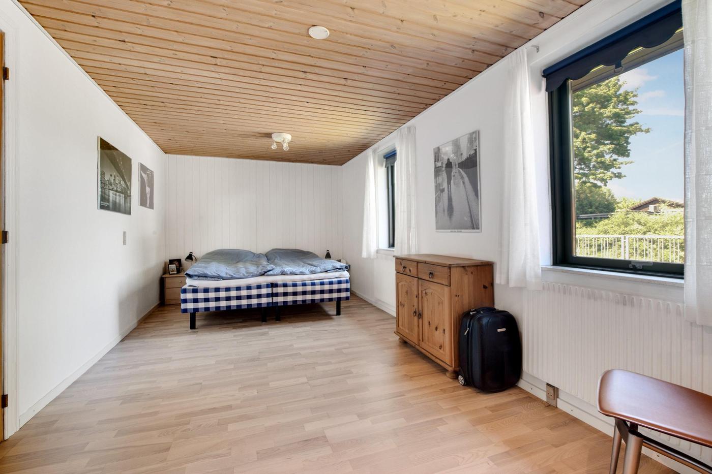 Når fyraften rammer og tiden skal tilbringes med familien, er det dejligt, at der også her er masser af plads at brede sig på. Først og fremmest ligger det lukkede havestykke omkranset af træer som en nem og overskuelig oase mod sydvest, hvor den overdækkede terrasse indtager pladsen som det primære opholdssted i sommerens hedebølge.