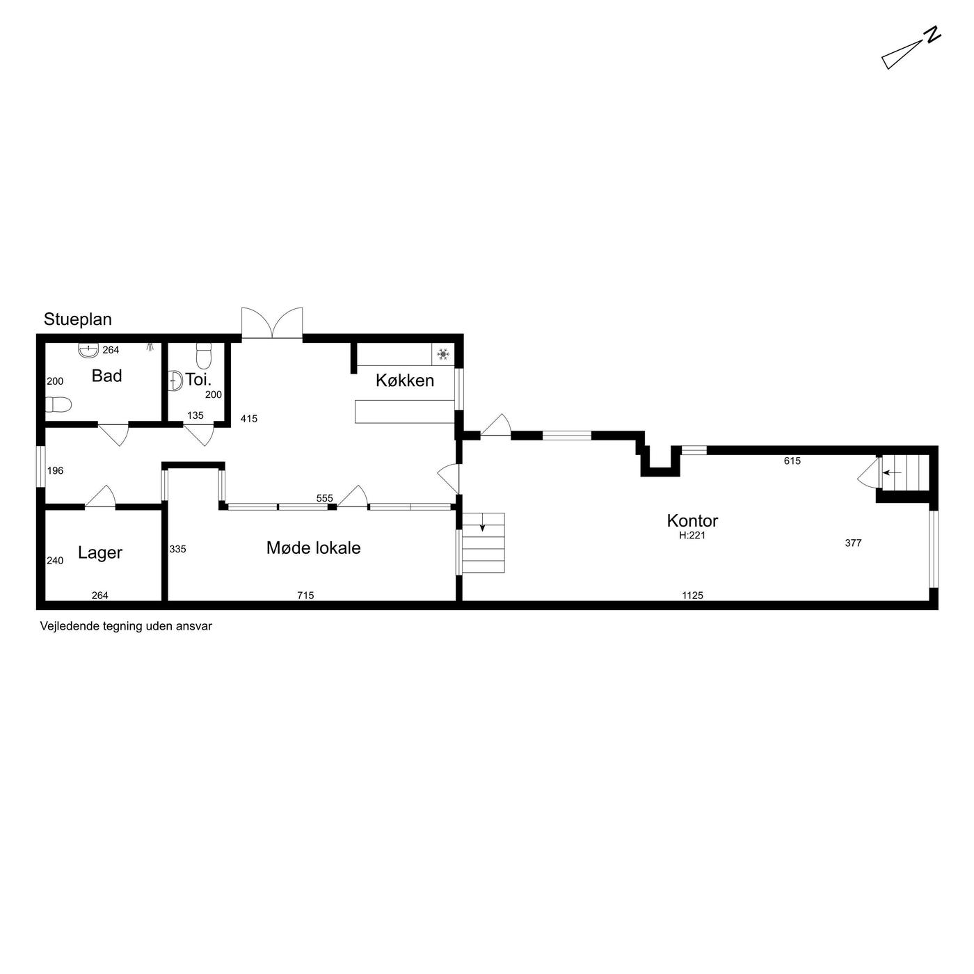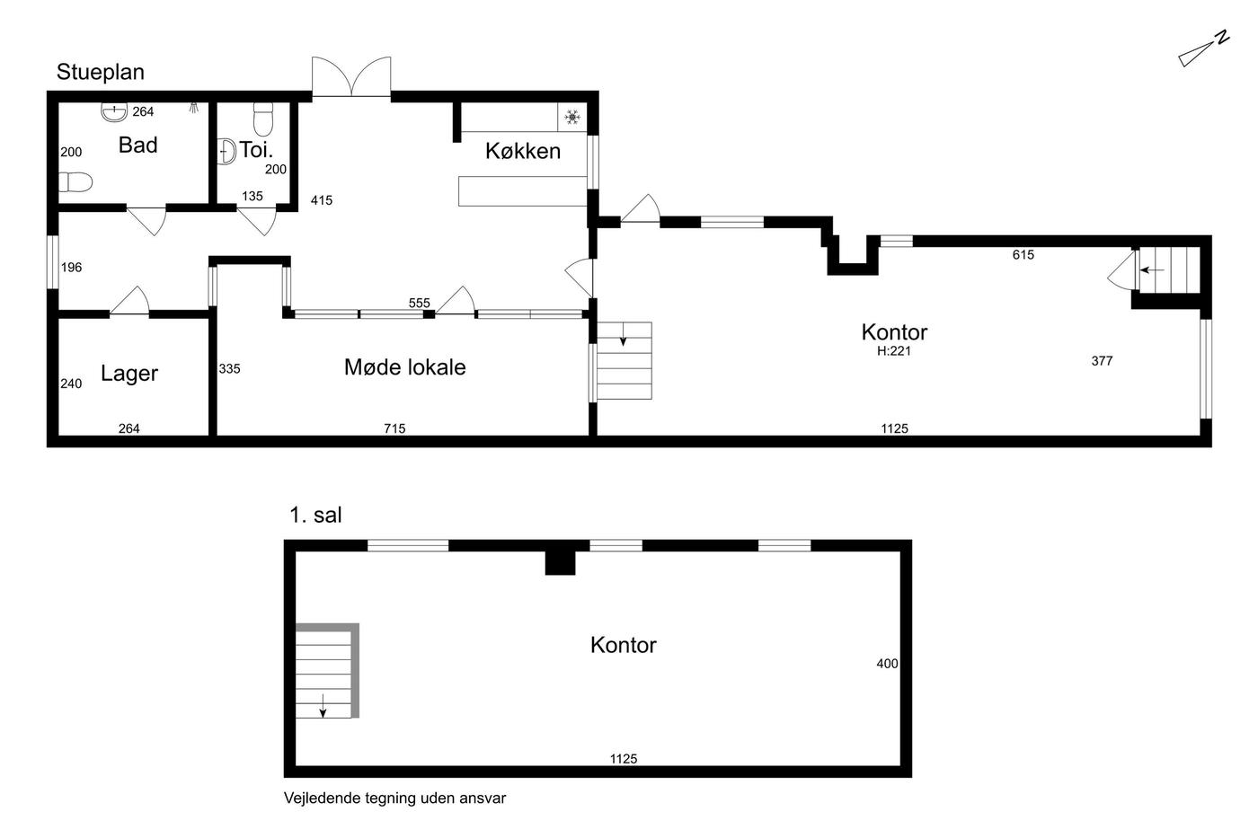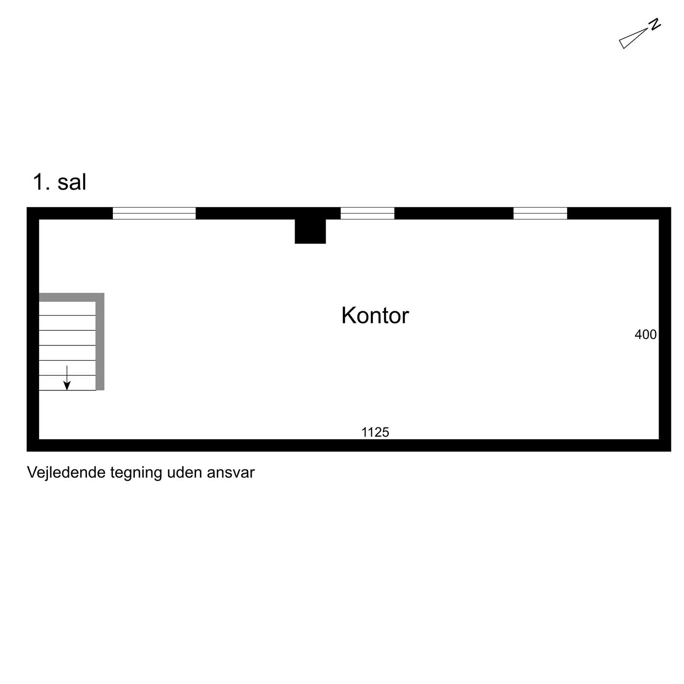 1 sal: Stort storrumskontor med mulighed for opdeling til mindre kontorer eller møderum.
