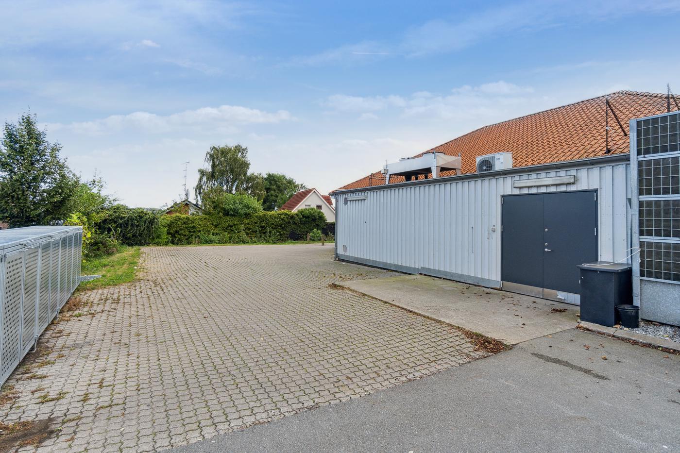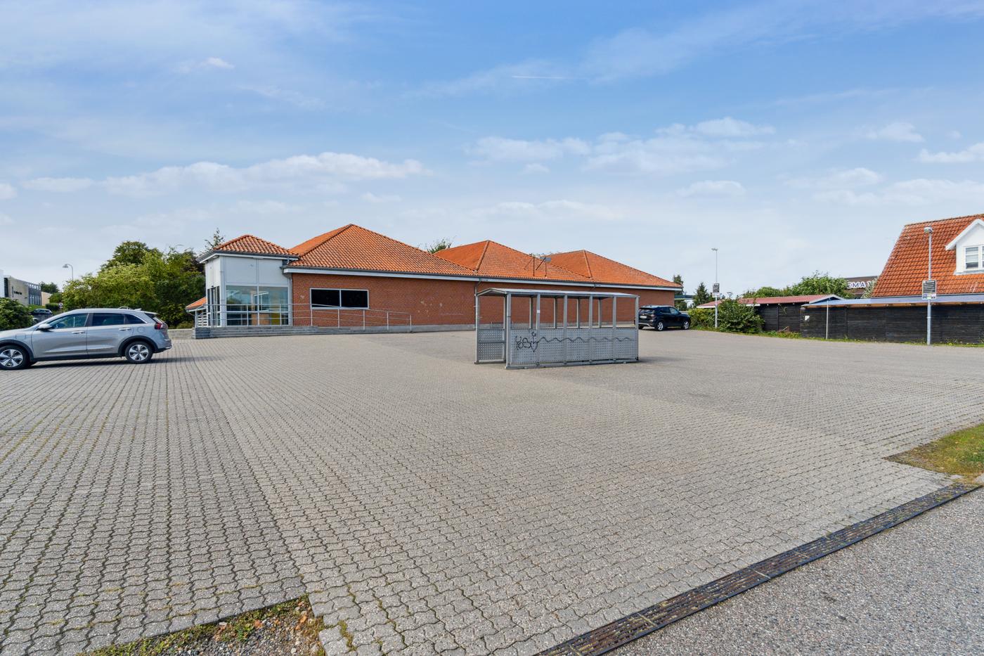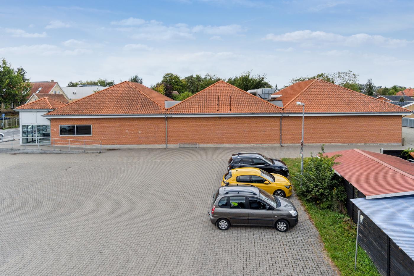 Ejendommen opvarmes effektivt med varmepumpe, og der er rigeligt med parkeringspladser foran bygningen på en flisebelagt plads, hvilket gør adgangen nem for både kunder og medarbejdere.
