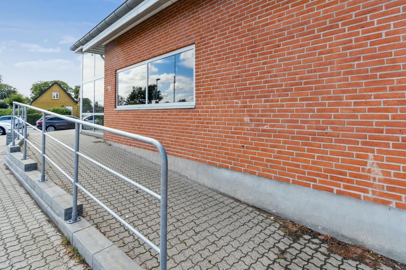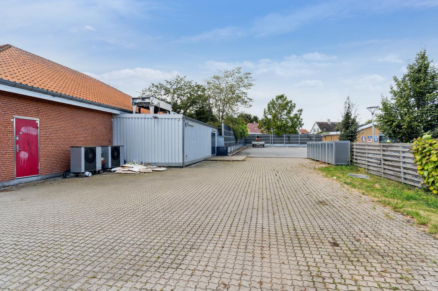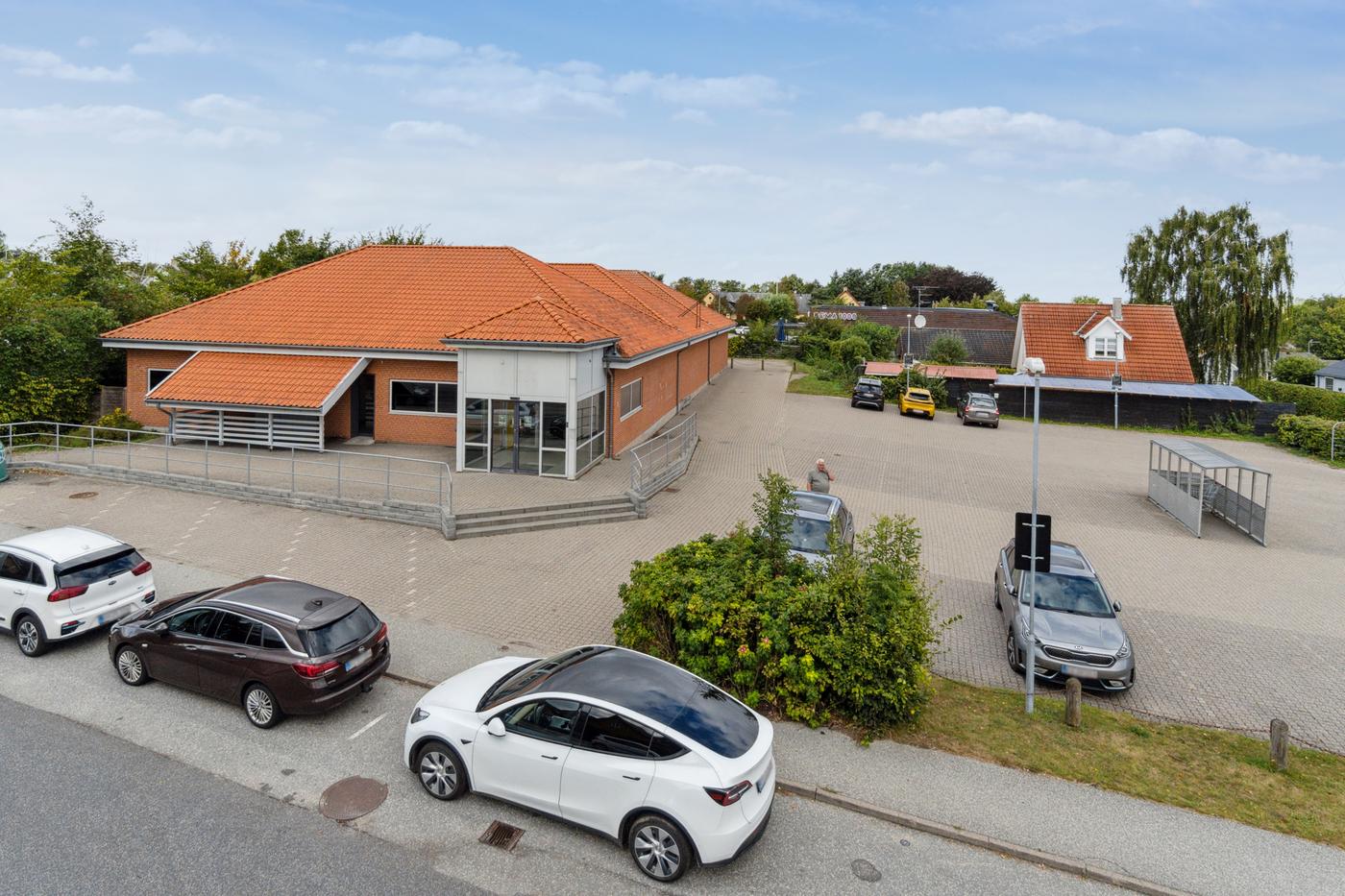 Ejendommen opvarmes effektivt med varmepumpe, og der er rigeligt med parkeringspladser foran bygningen på en flisebelagt plads, hvilket gør adgangen nem for både kunder og medarbejdere.