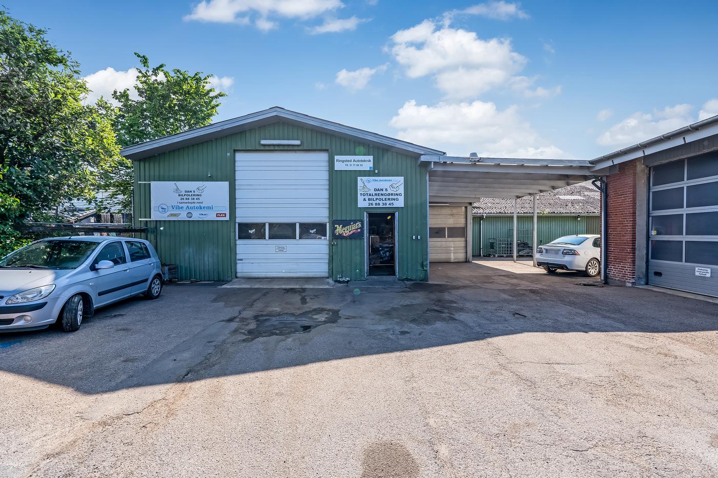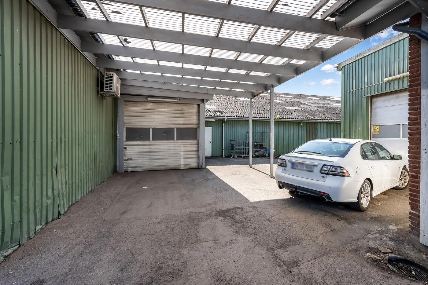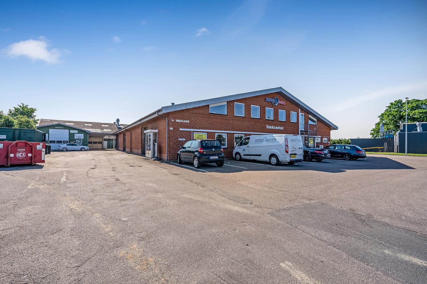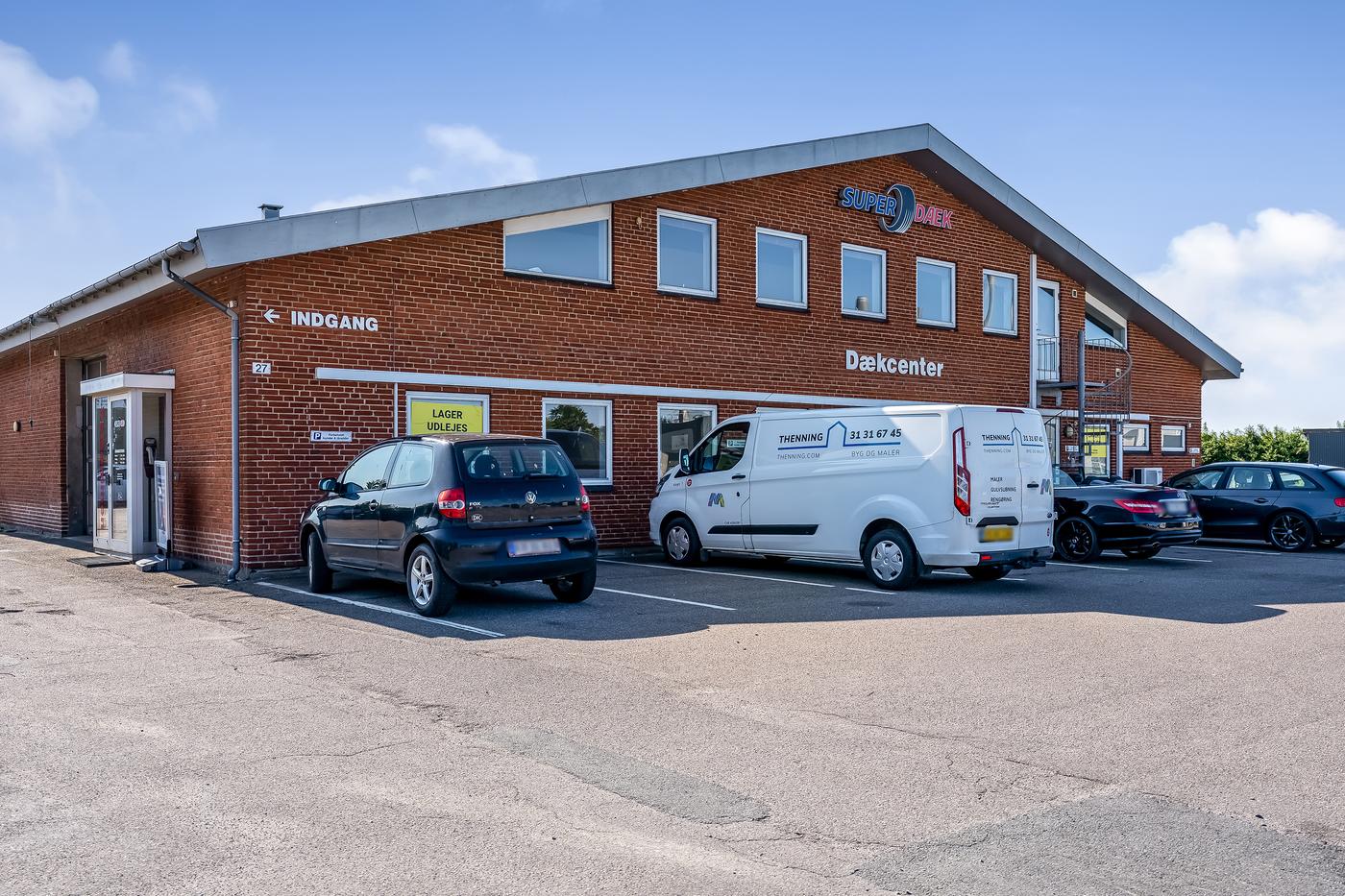 Foran bygningen er der parkeringspladser, og gode adgangsforhold via bred indkørsel. Der er mulighed for at leje yderligere kvadratmeter på ejendommen.