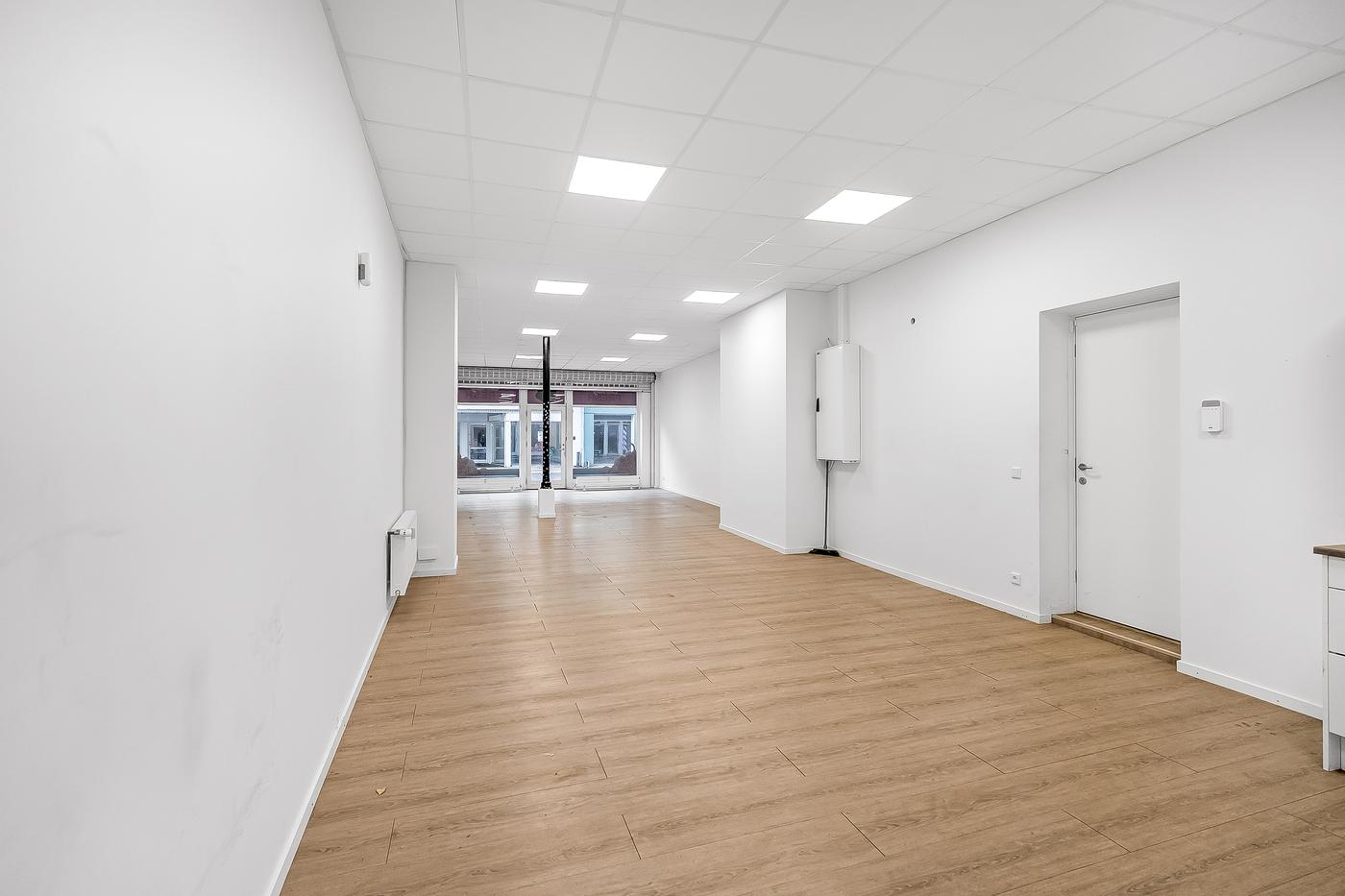 Lejemålet fremstår velholdt og istandsat med nye gulve samt nymalede hvide vægge, hvilket giver et lyst og indbydende udtryk. Udstillings- og salgsarealet er optimalt disponeret og udnyttet bedst muligt, så størstedelen af kvadratmeterne er dedikeret til butiksareal. I lejemålet findes yderligere køkkenfaciliteter og toilet i gården.