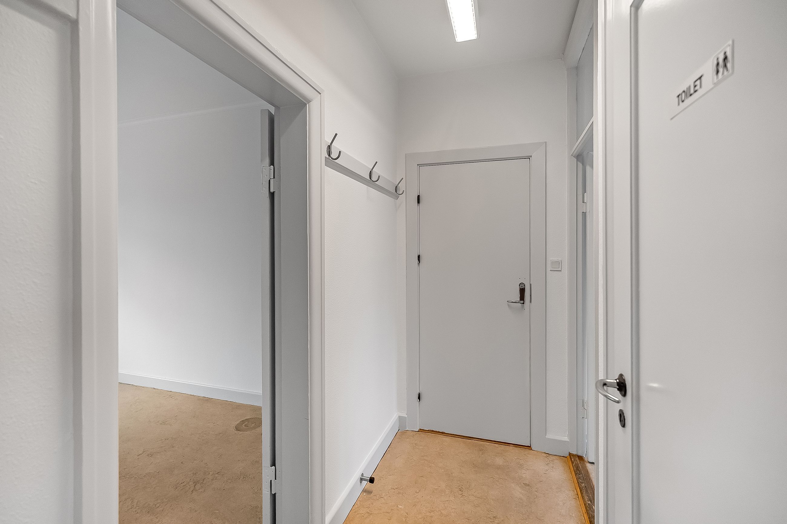 kvadratmetrene fordeler sig på tre regulære rum, med flere anvendelsesmuligheder og kreativ indretning. Derudover findes der i lejemålet et toilet samt mindre tekøkken.