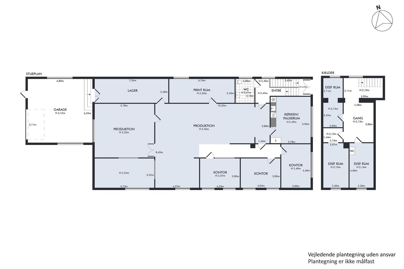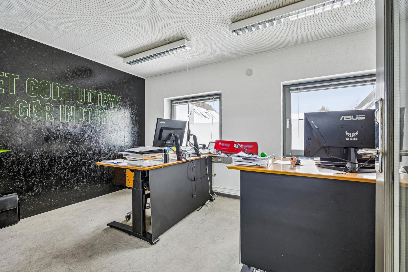 Derudover rummer ejendommen et velindrettet administrationsafsnit med frokoststue, mødelokale, produktionsrum og øvrige velfærdsfaciliteter. Under en del af bebyggelsen findes en brugbar kælder med flere gode rum, som giver ekstra opbevaringsmuligheder.
