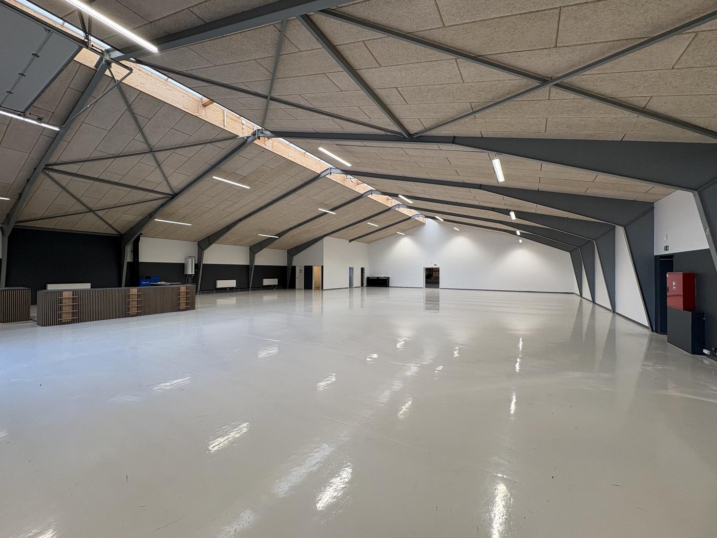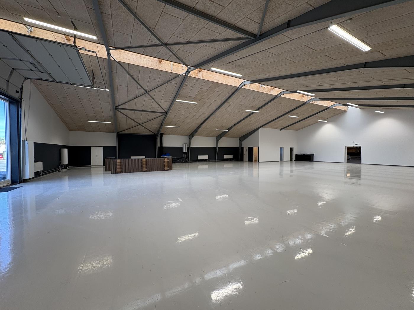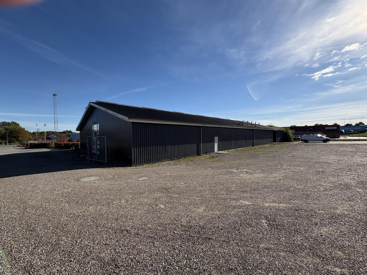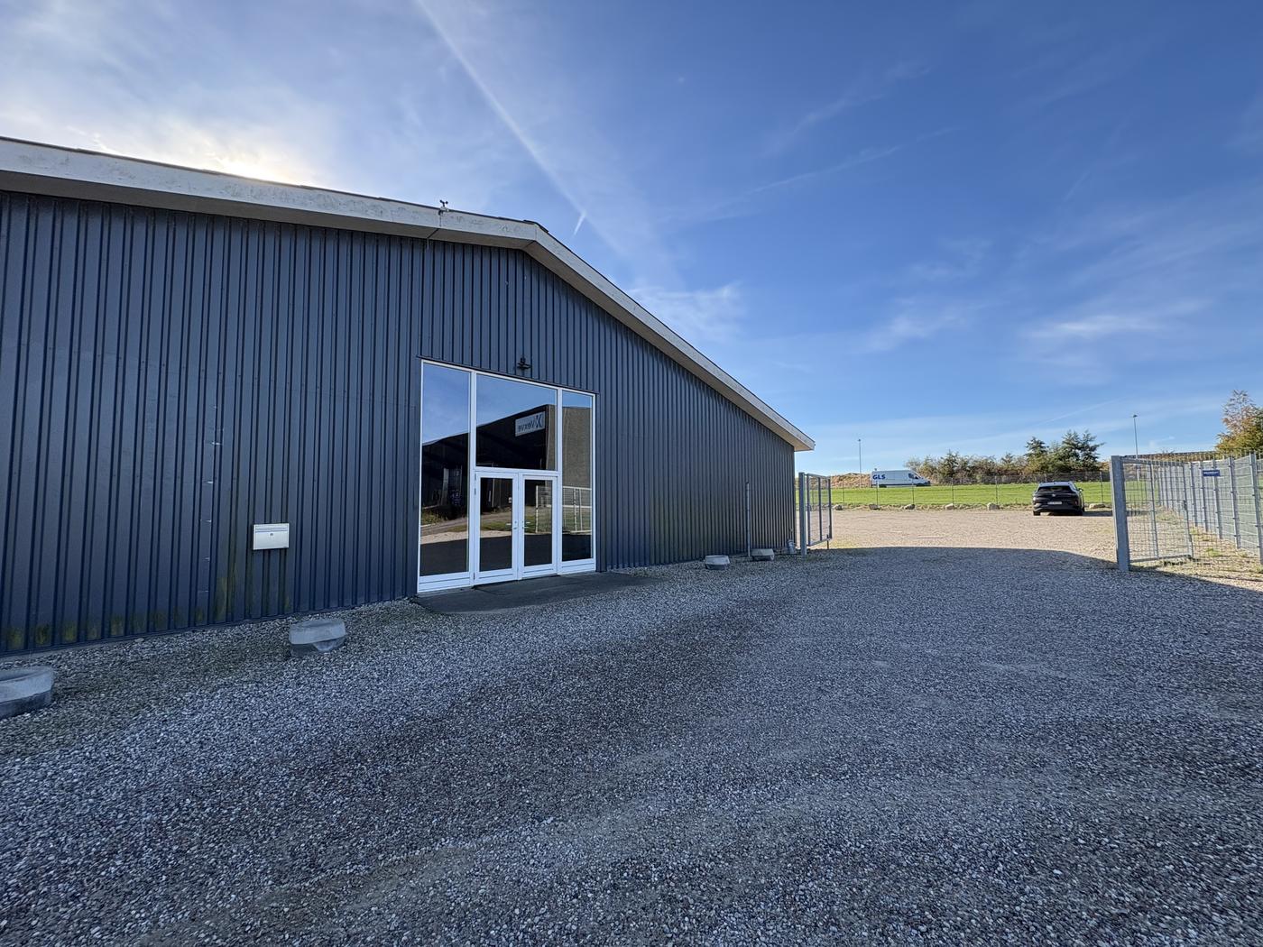 Indvendigt er der epoxygulv, personale- og kundetoilet og frokoststue, hvilket sikrer gode faciliteter for både medarbejdere og daglig drift. Derudover medfølger et stort, indhegnet udendørsareal, som giver mulighed for oplag, parkering eller anden udendørs aktivitet.
