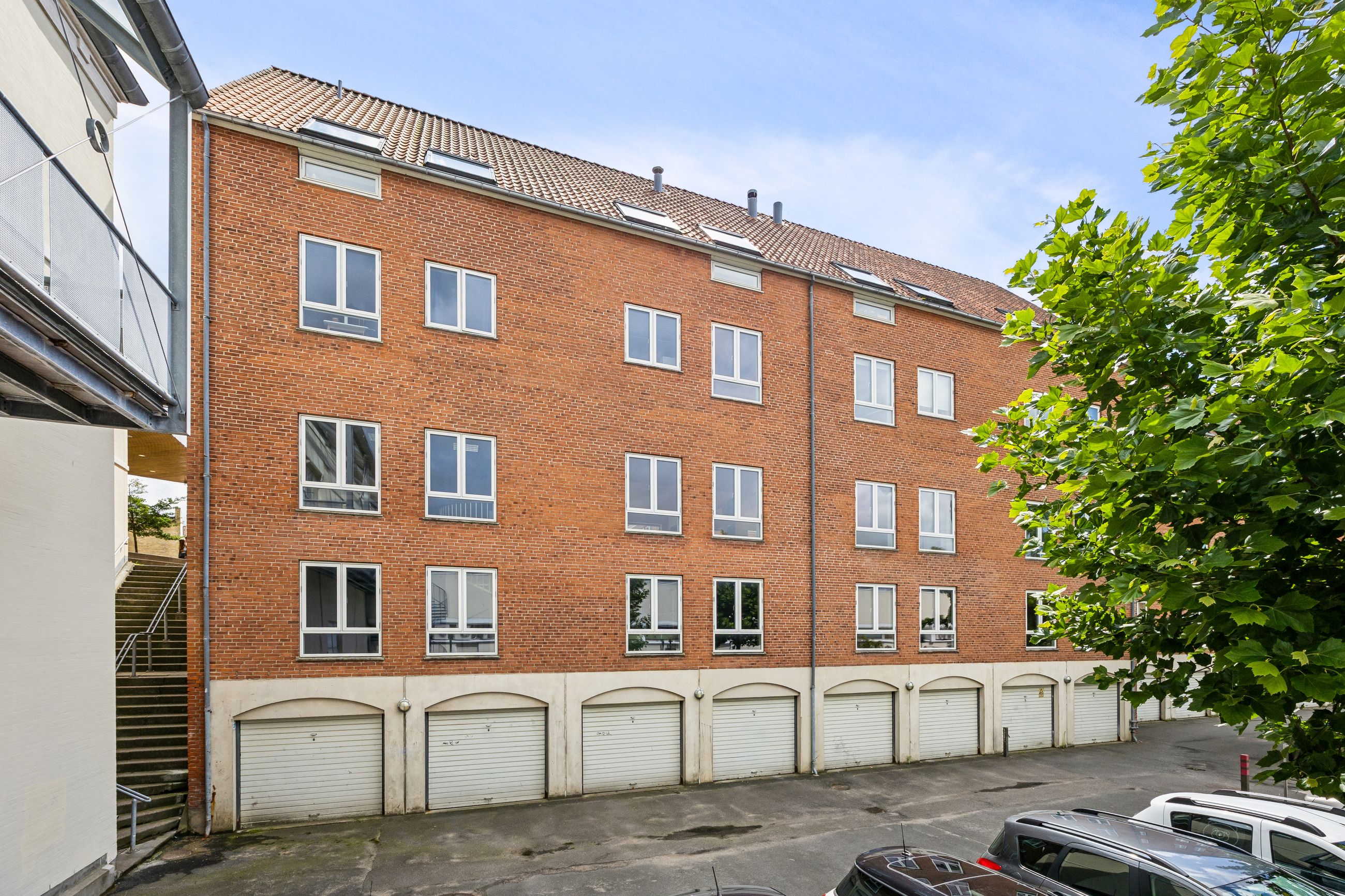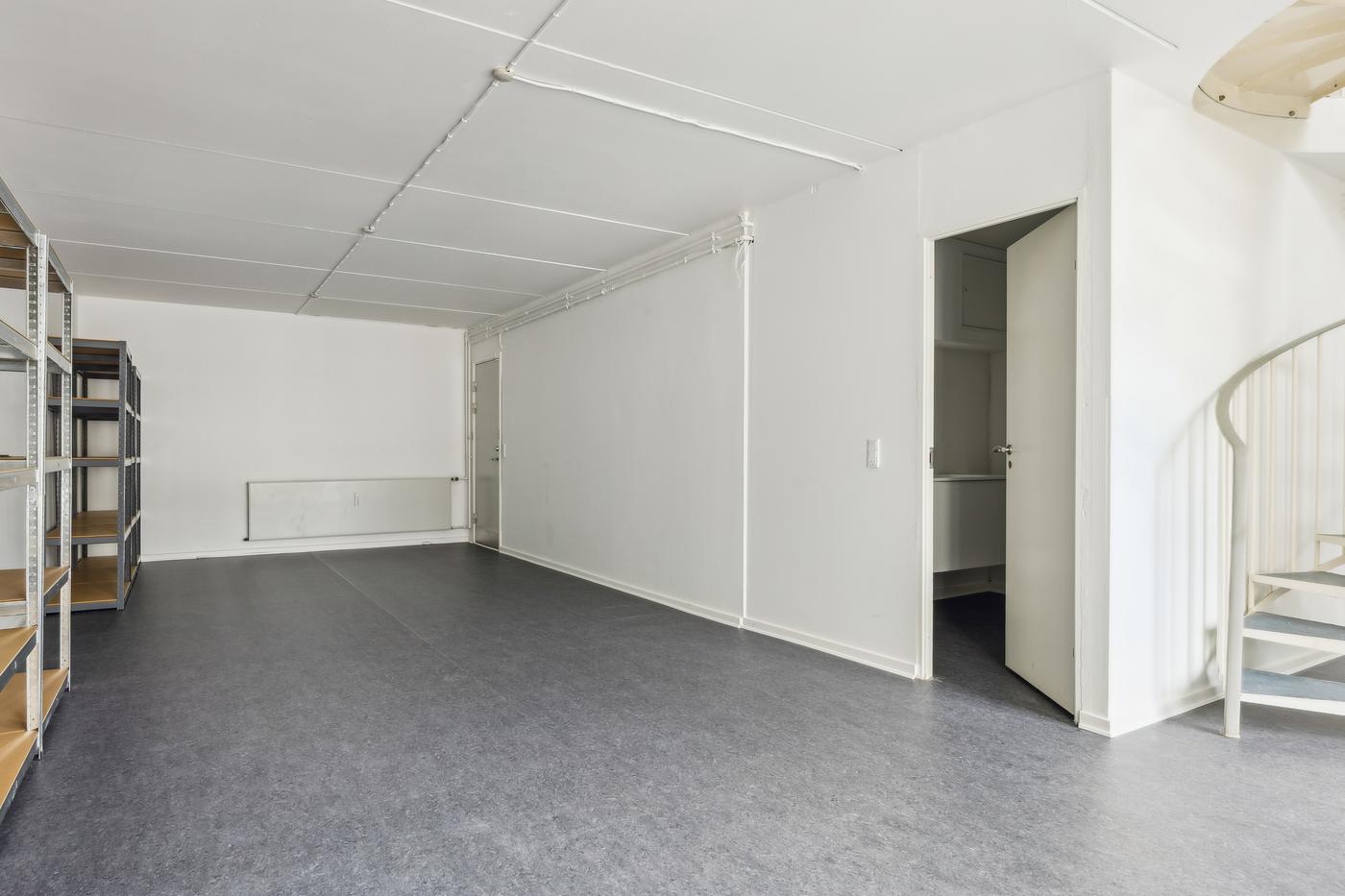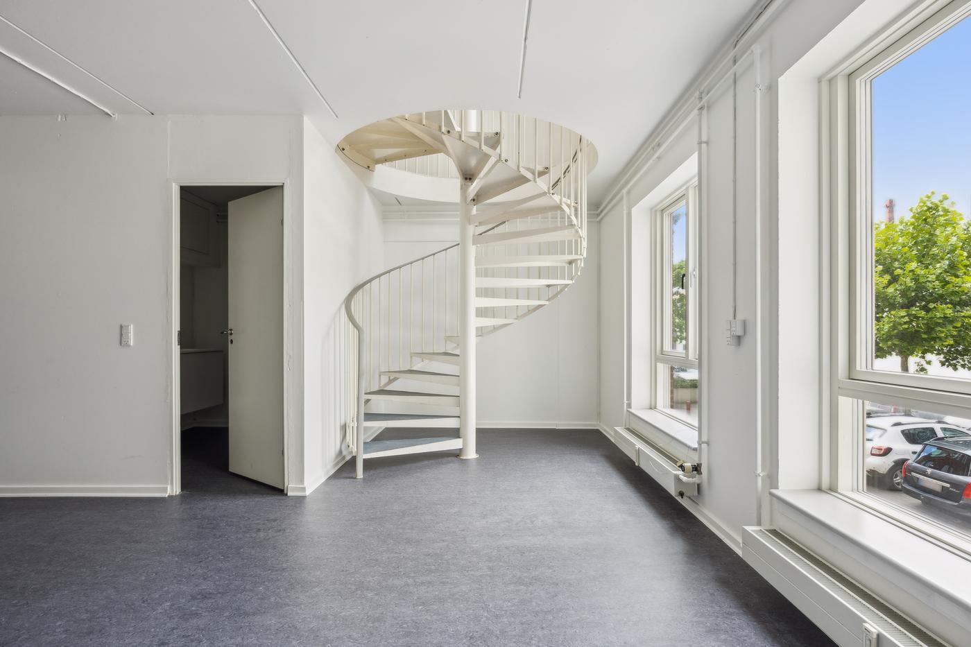 Indvendig trappe til anvendelig kælder med store lyse vinduesparti. Indenfor gåafstand findes der parkeringsmuligheder samt offentlig transport.