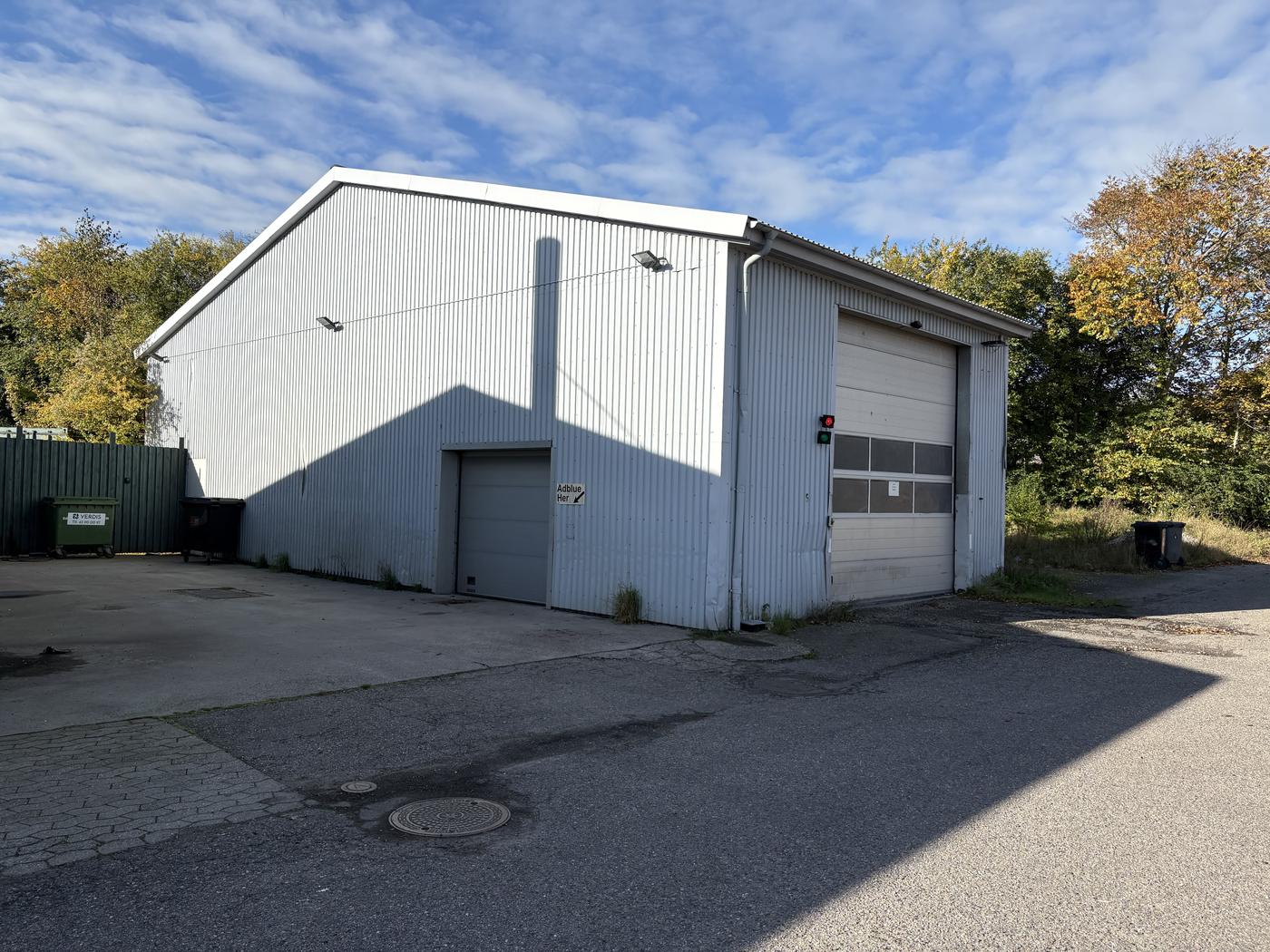 Godkendt vaskeplads i en 130 m² uisoleret stålhal med olieudskiller og sandfang - oplagt til bus-, transport- eller entreprenørvirksomheder.