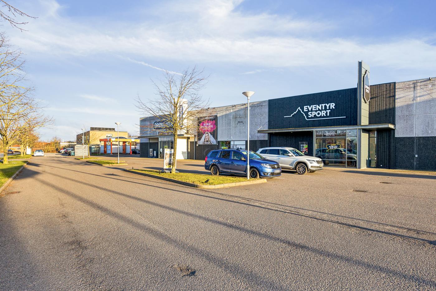 Udendørs har ejendommen stor parkeringsplads med plads til mange biler, hvilket sikrer nem adgang for både kunder og ansatte. Kørevejen rundt om bygningen gør det nemt at komme til og fra, og der en bagindgang med en bred port, som giver mulighed for effektiv varehåndtering.