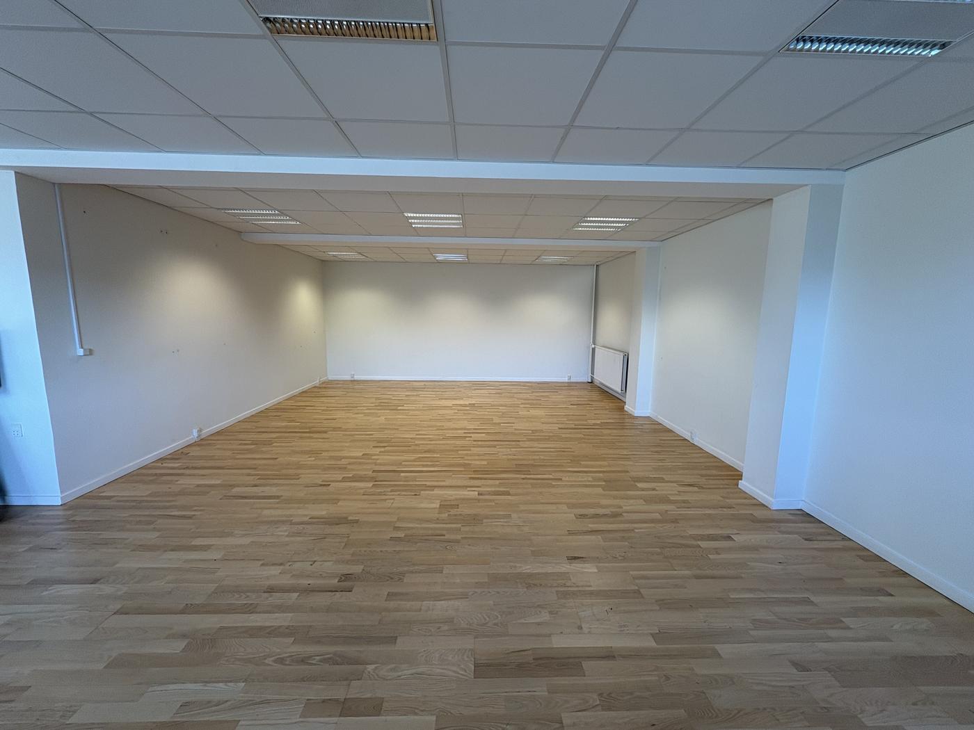 Lokalet fremstår lyst, nyt og meget indbydende med lyse gulve og gode indretningsmuligheder.