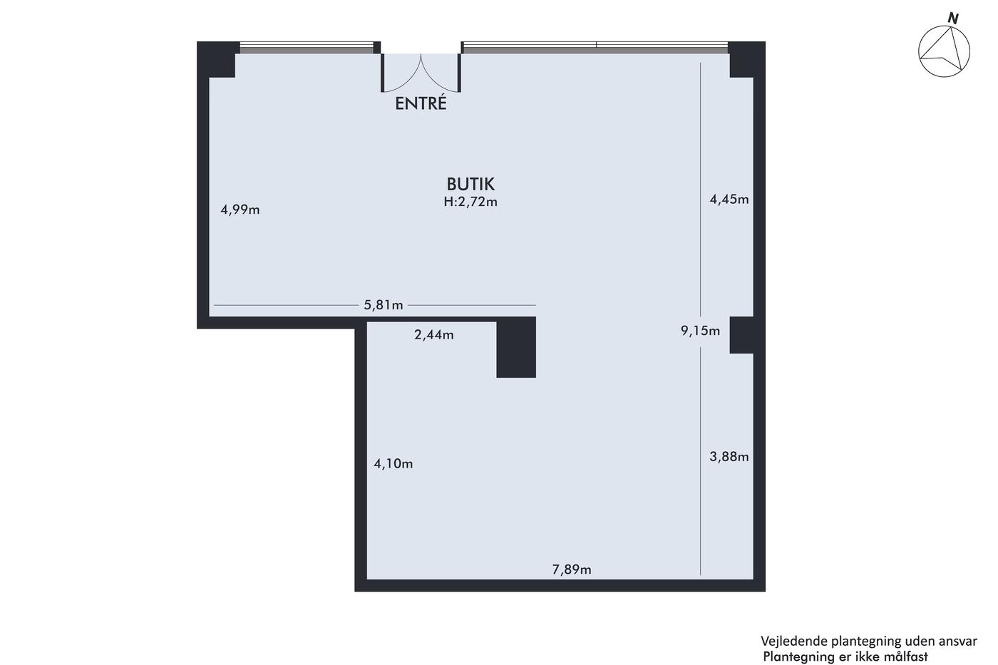 Her får du et erhvervslokale, som er klar til indflytning. Lokalet kan indrettes til mange formål, f.eks. frisørsalon, klinik, butik eller lign.