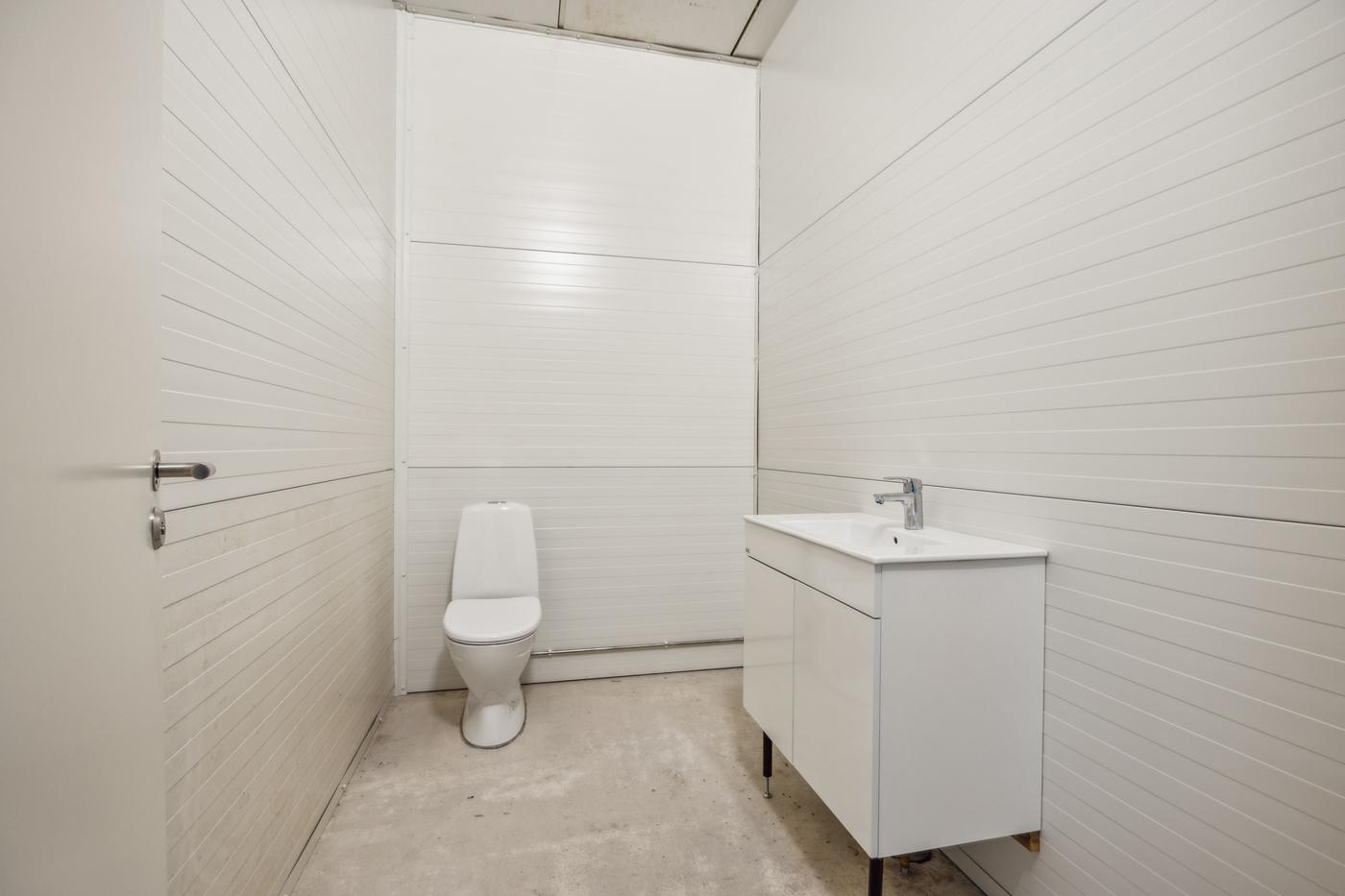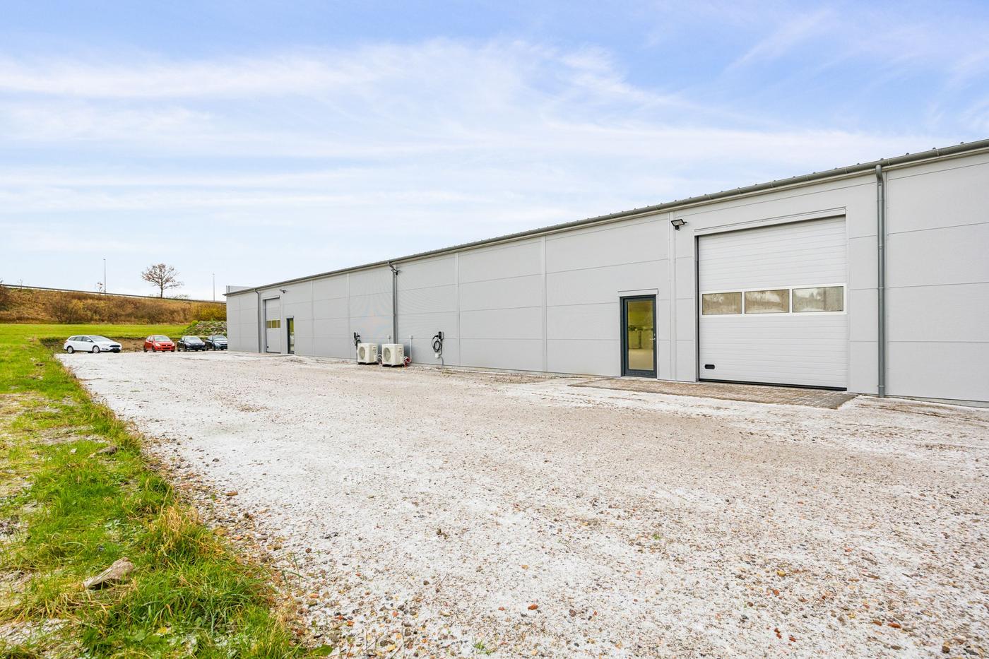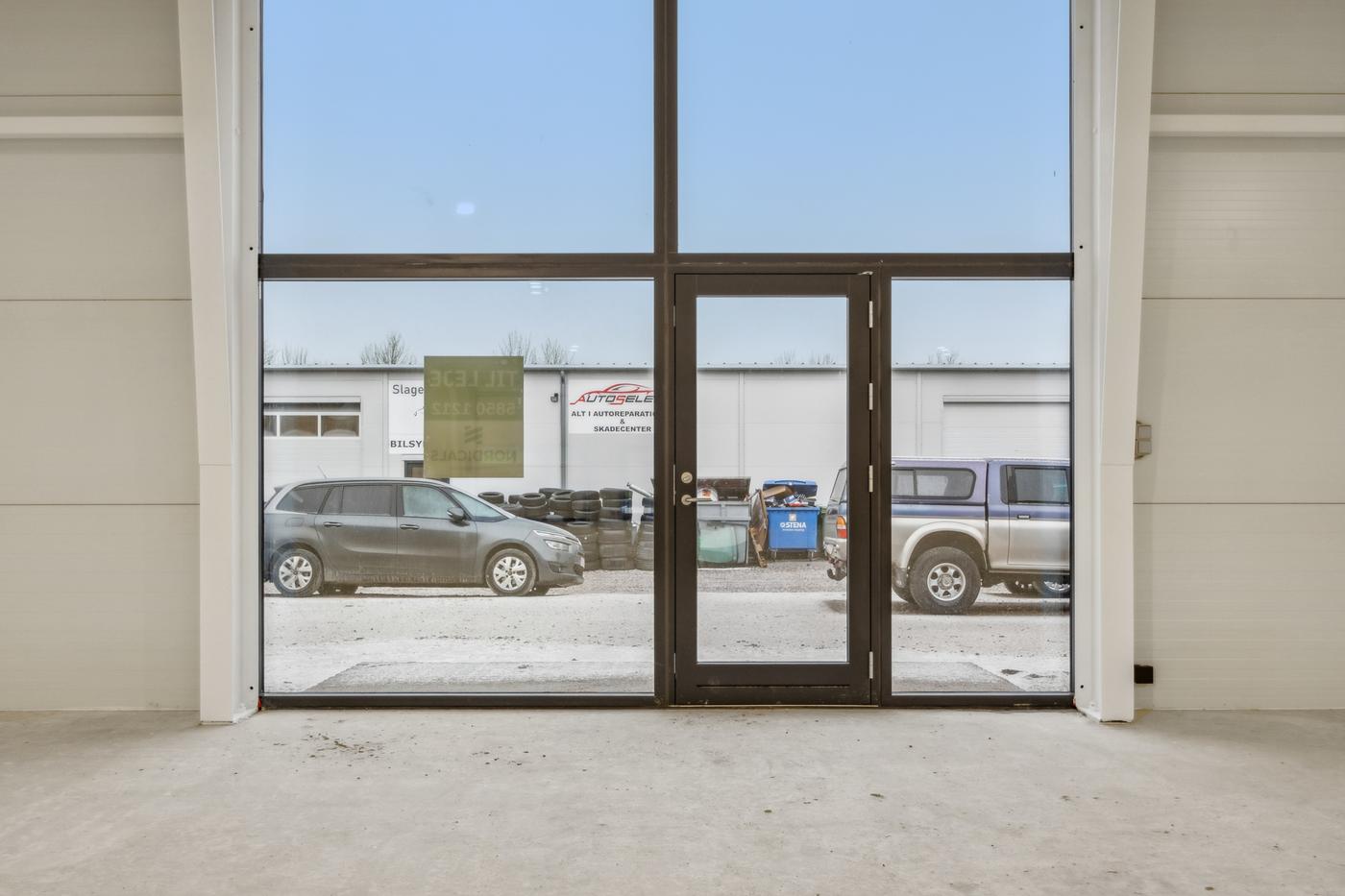 Indeholdende regulært og pænt lager / værksted med med gode port forhold, toilet og mandskabsfaciliteter mv.