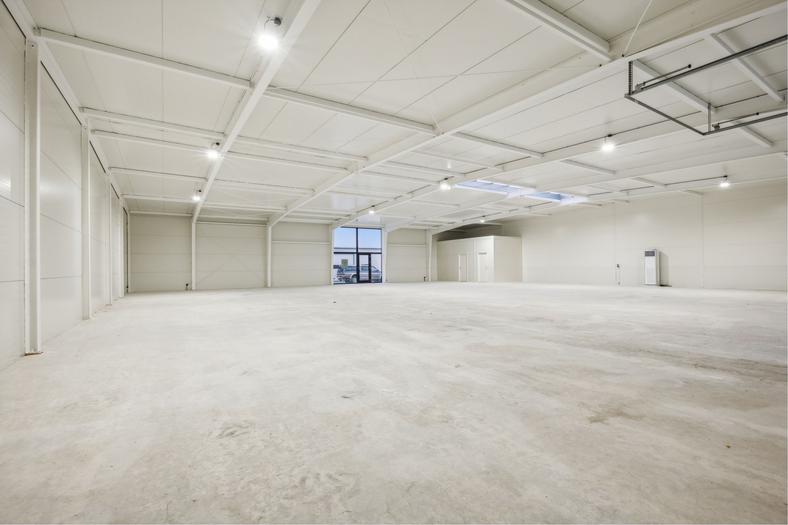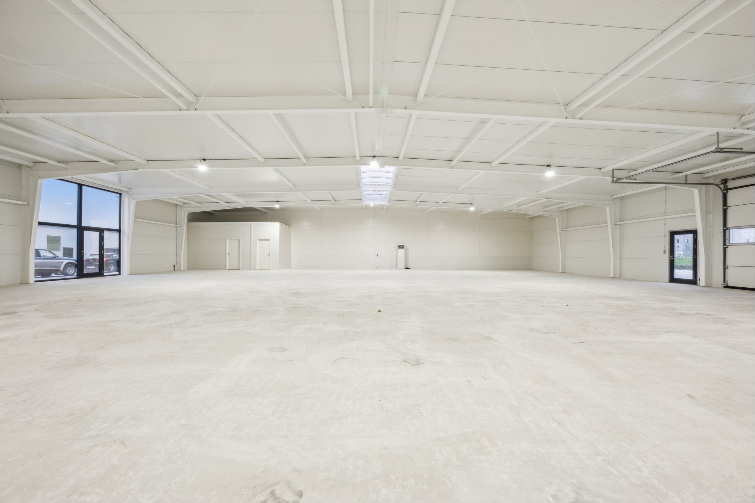 I alt andrager ejendommen 1.200 m² hvorfor der er mulighed for at foretage en opdeling. En oplagt mulighed for at få et nybygget og præsentabelt lager, værksted, grovvarehandel etc. med moderne faciliteter og indretning.