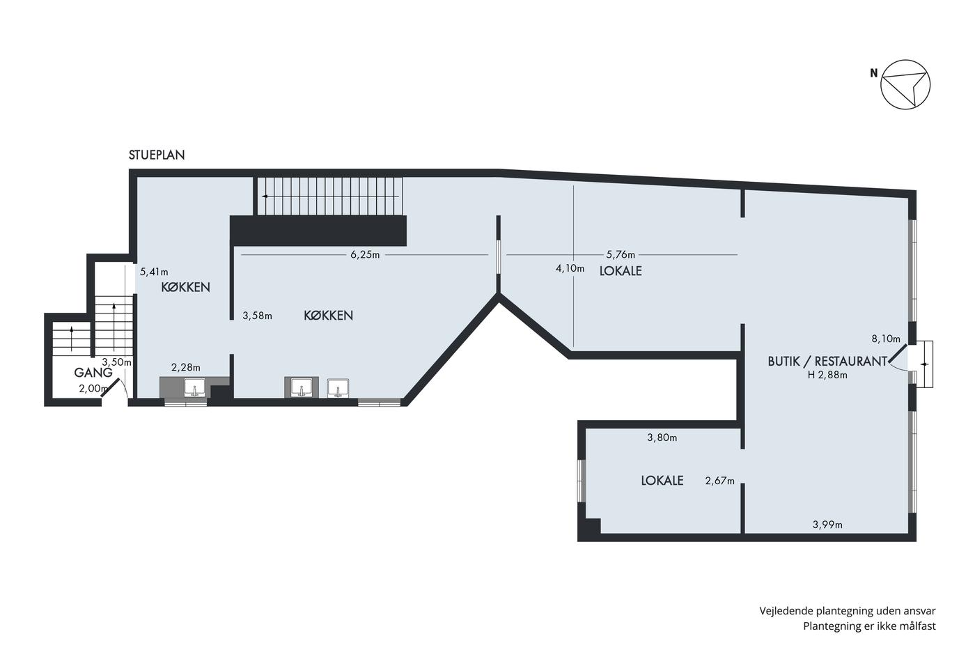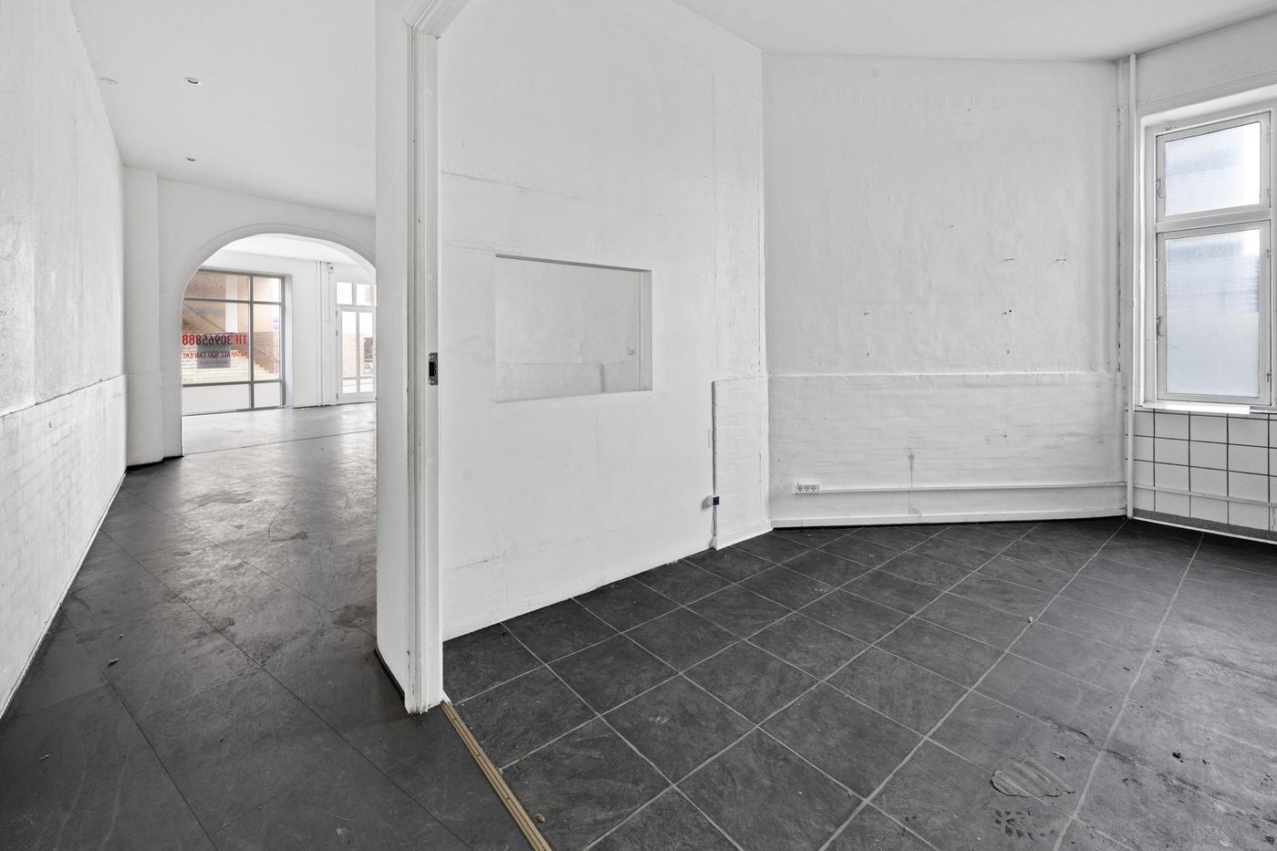 Lokalet er delvis istandsat, men installationer fra det tidligere køkken er bevaret og kan benyttes til både varmt og koldt køkken. Det er også muligt at ændre til anden anvendelse f.eks. klinik med flere behandlerrum, butik, salon e.l.