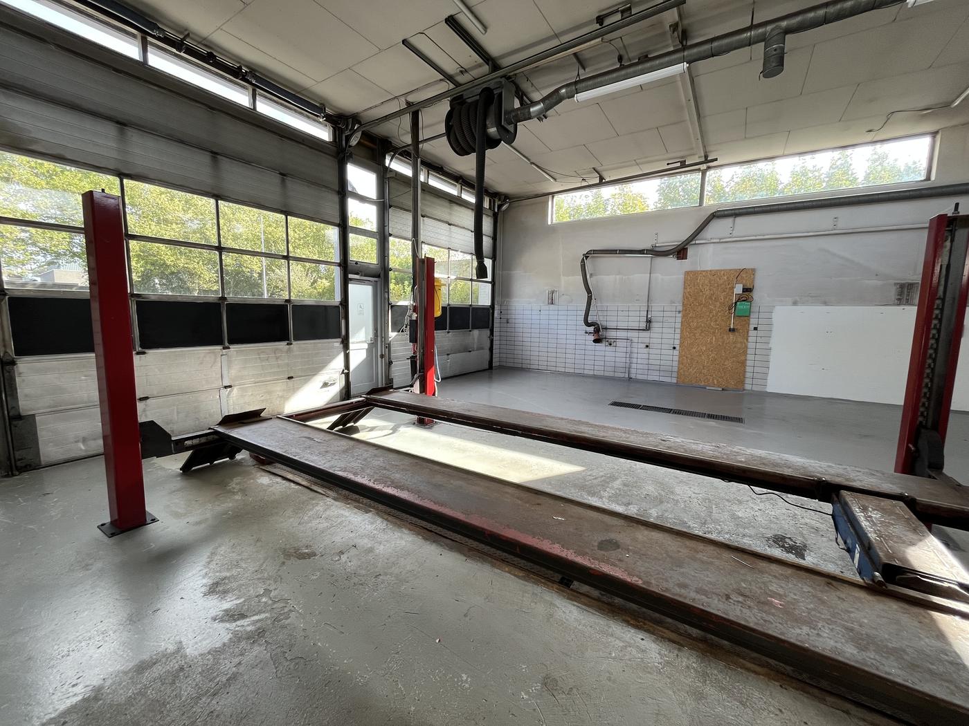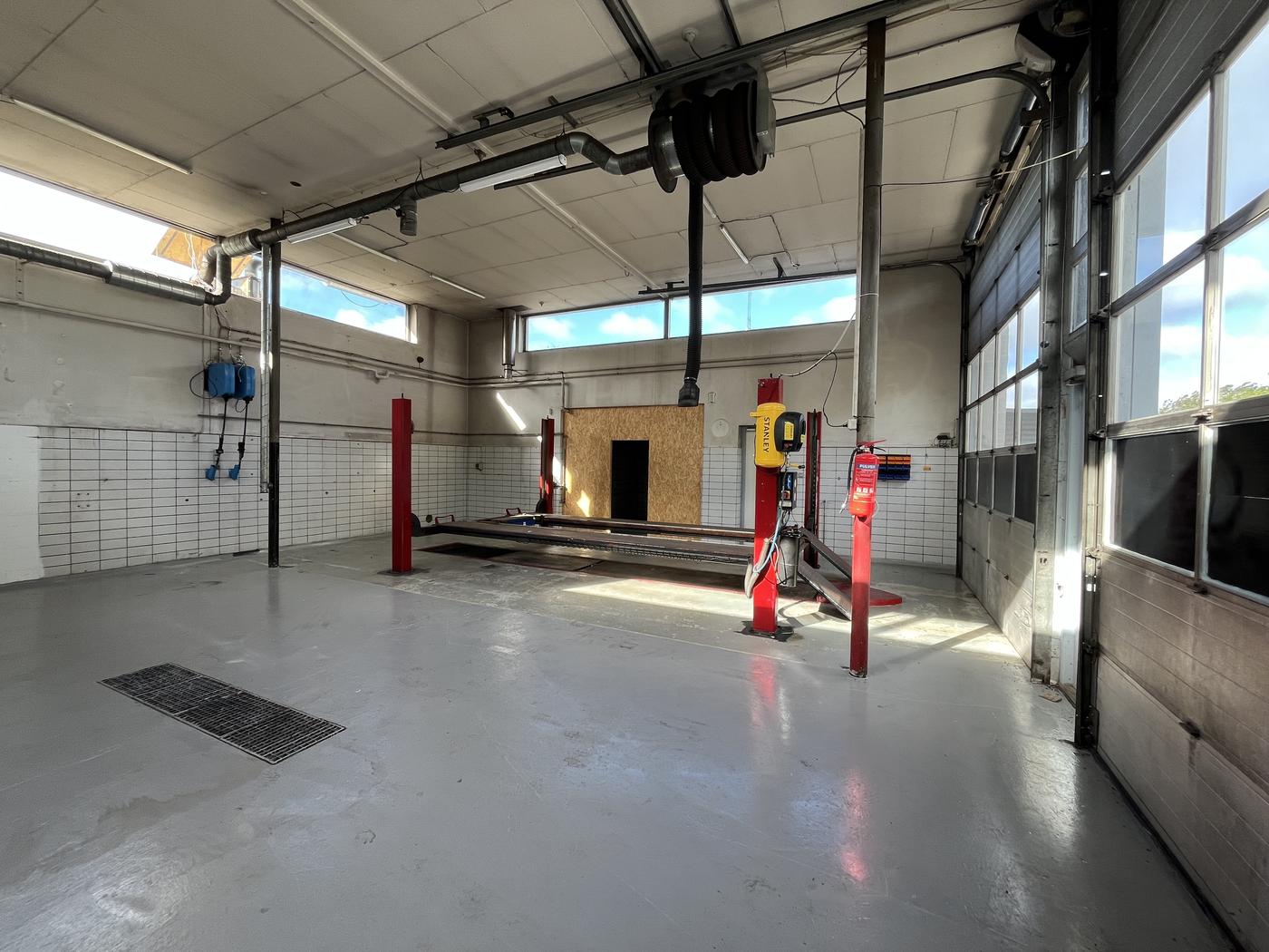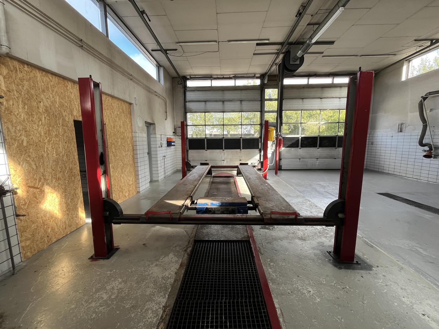 Lejemålet består af et velindrettet værksted med stor lift, 2 store porte, ideelt til mekanisk arbejde, bilklargøring eller lignende aktiviteter. Derudover er der faciliteter til indskrivning, kontor og kundemodtagelse, hvilket gør ejendommen velegnet til bilsalg eller anden erhvervsdrift med behov for både værksteds- og kontorarealer.
