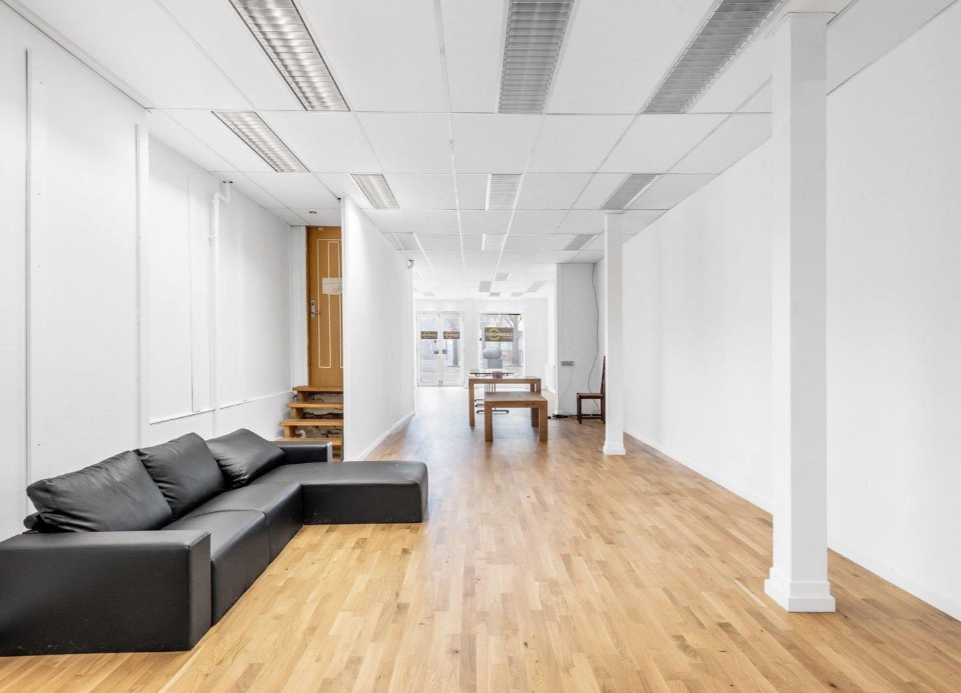 1. salen er delvist indrettet, og fordeles mellem de 2 butikker.