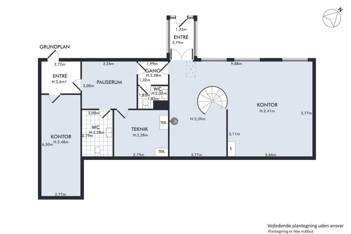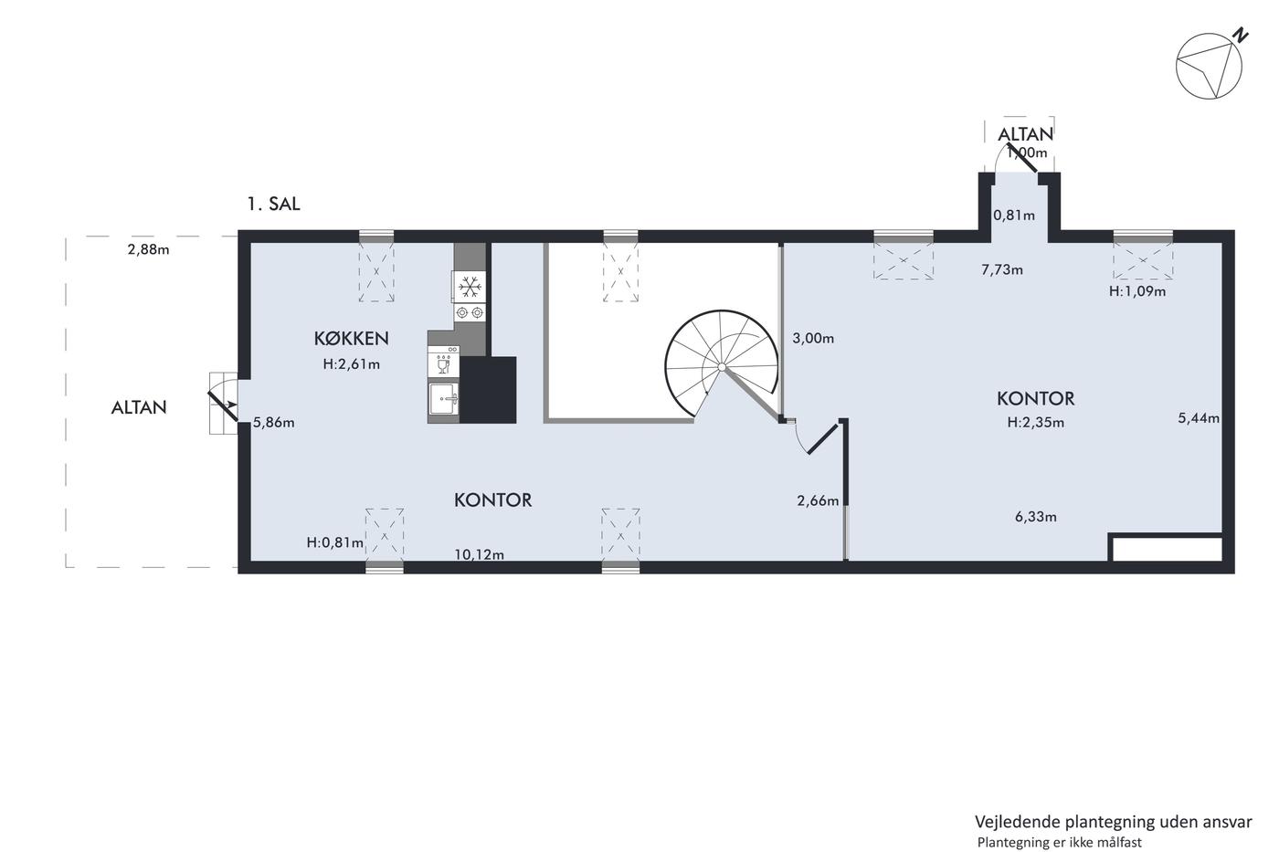 Muligheder for anden anvendelse: Udover at være velegnet som kontor, er lejemålet også oplagt til andre brancher som frisør, klinik eller detailhandel, der ønsker en central placering.