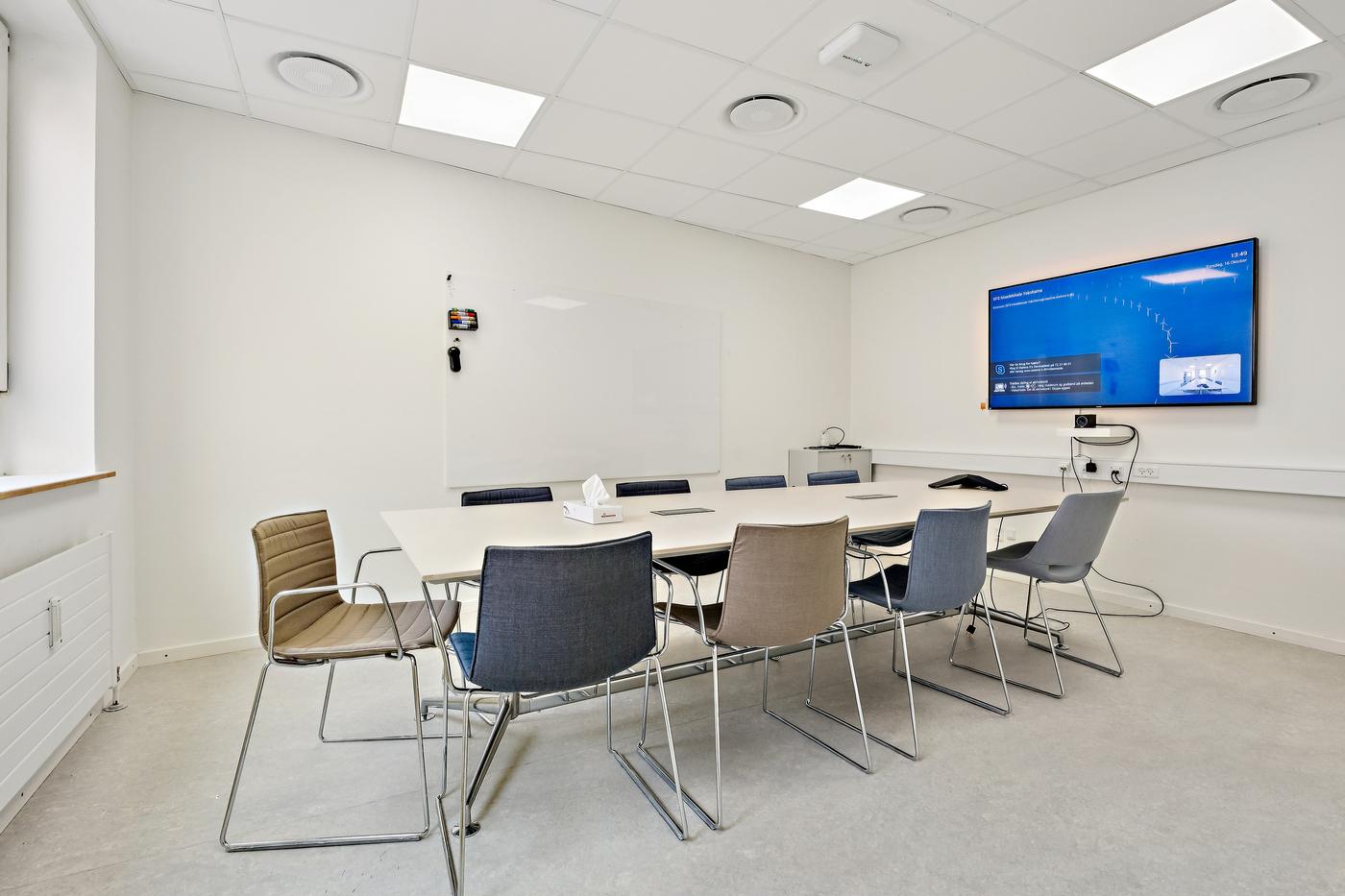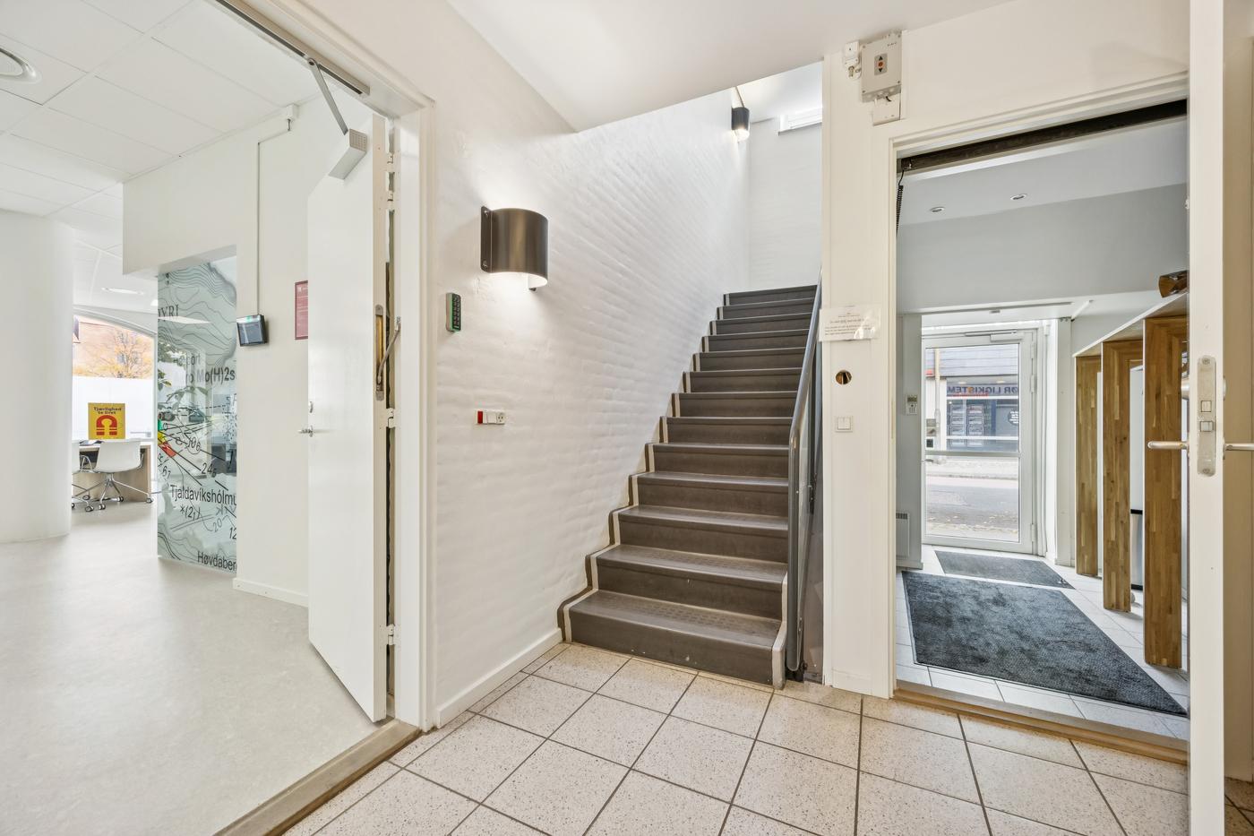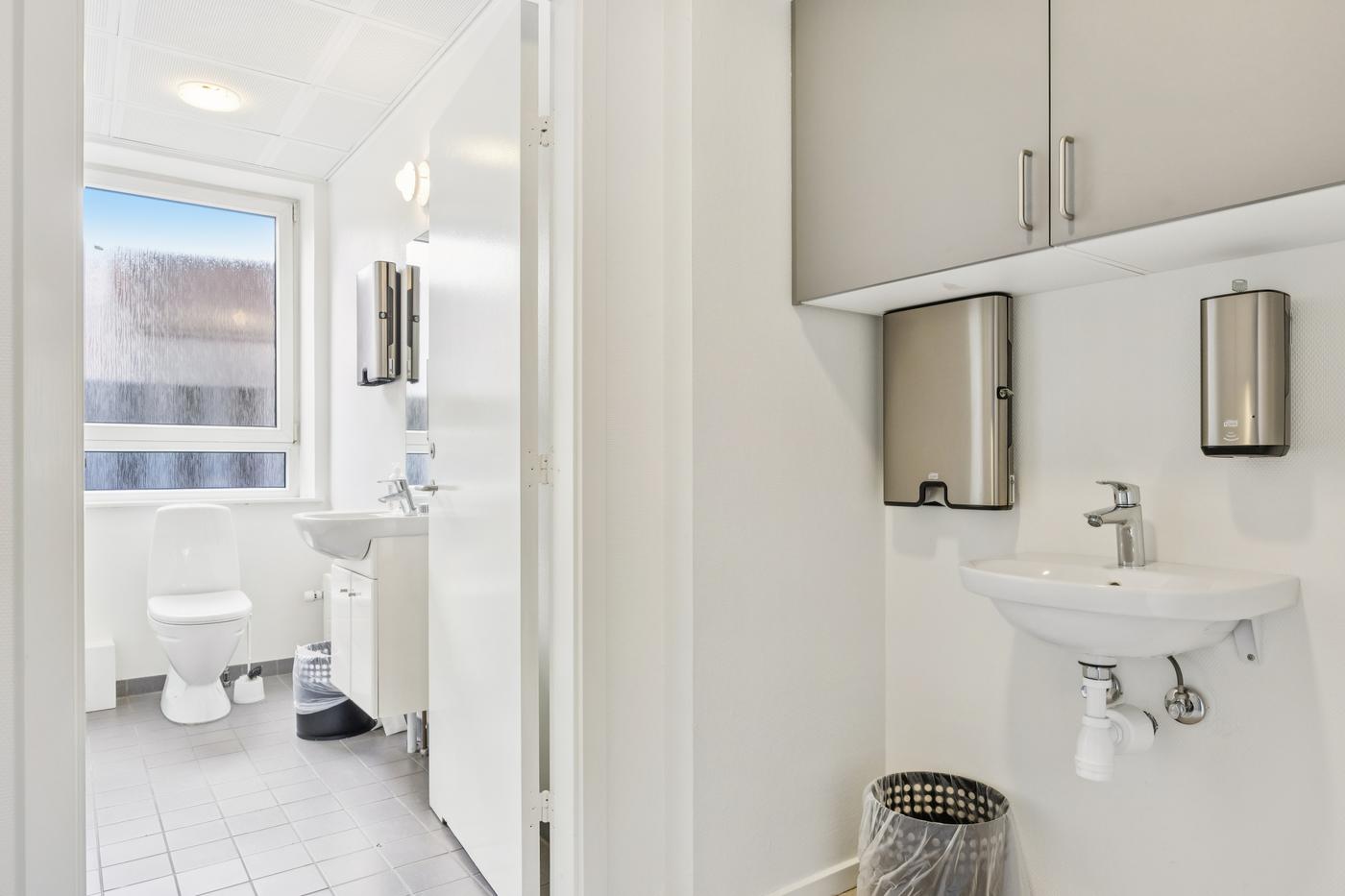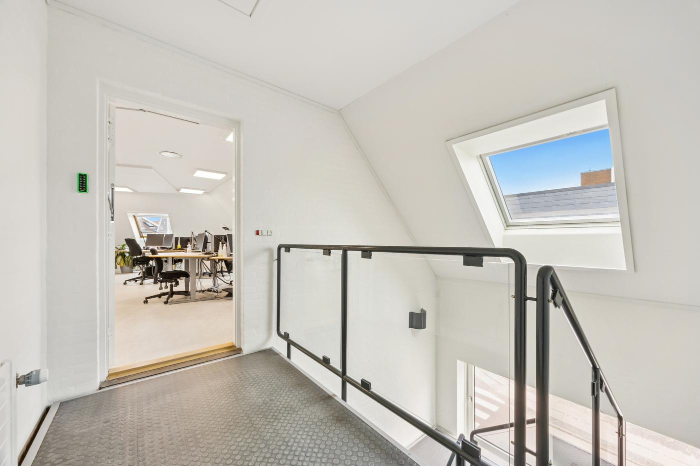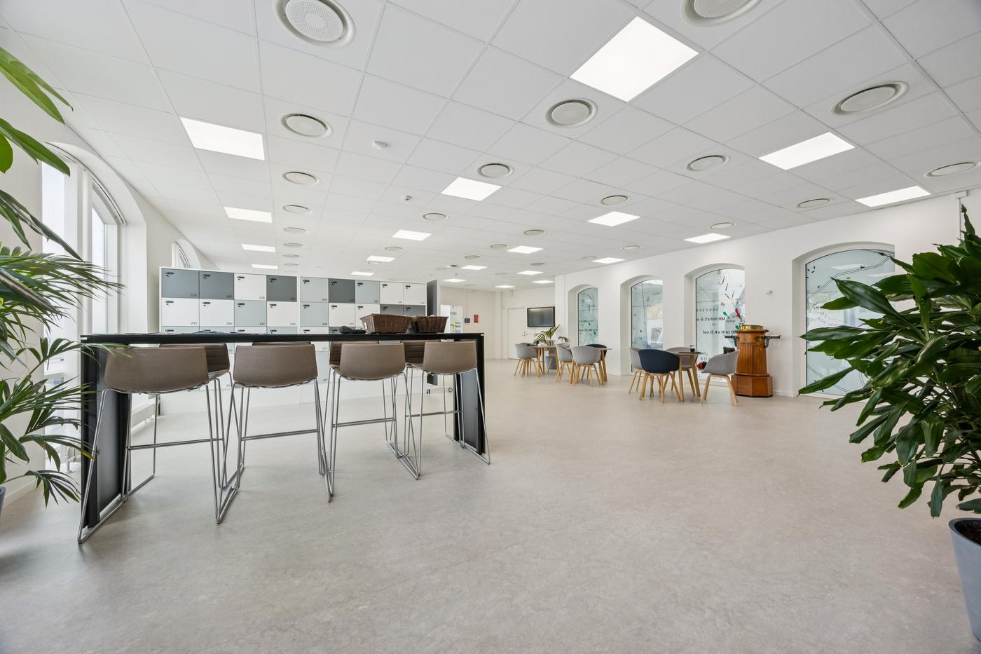 Dette attraktive kontorlejemål byder på lyse og indbydende rammer med store vinduespartier, der sikrer et naturligt lysindfald hele dagen.