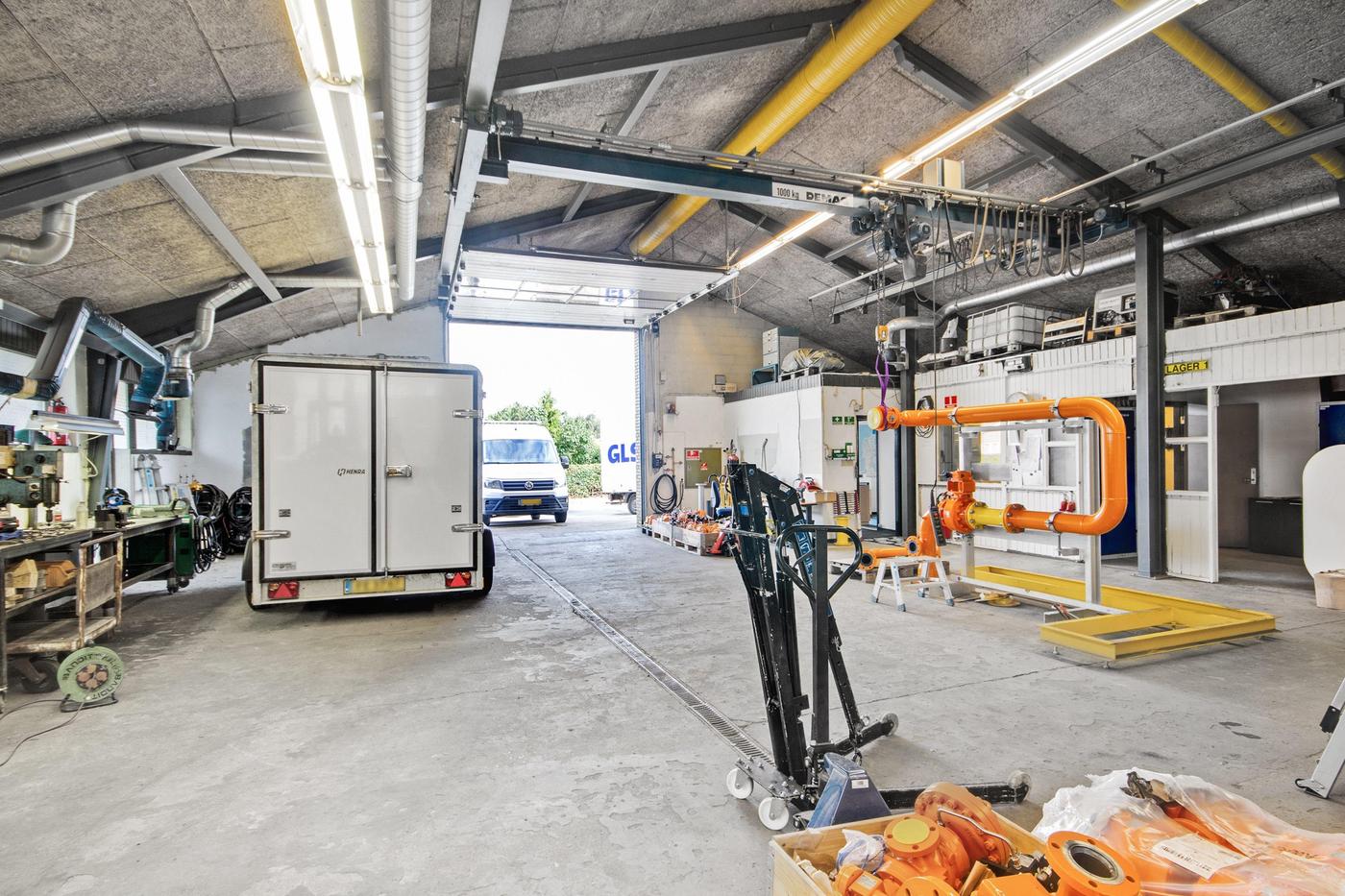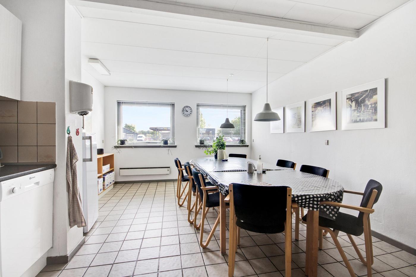 Ejendommen er udlejet til Kemp & Lauritzen og er indrettet med opvarmet og isoleret værksted, kontor- og mandskabsfaciliteter.