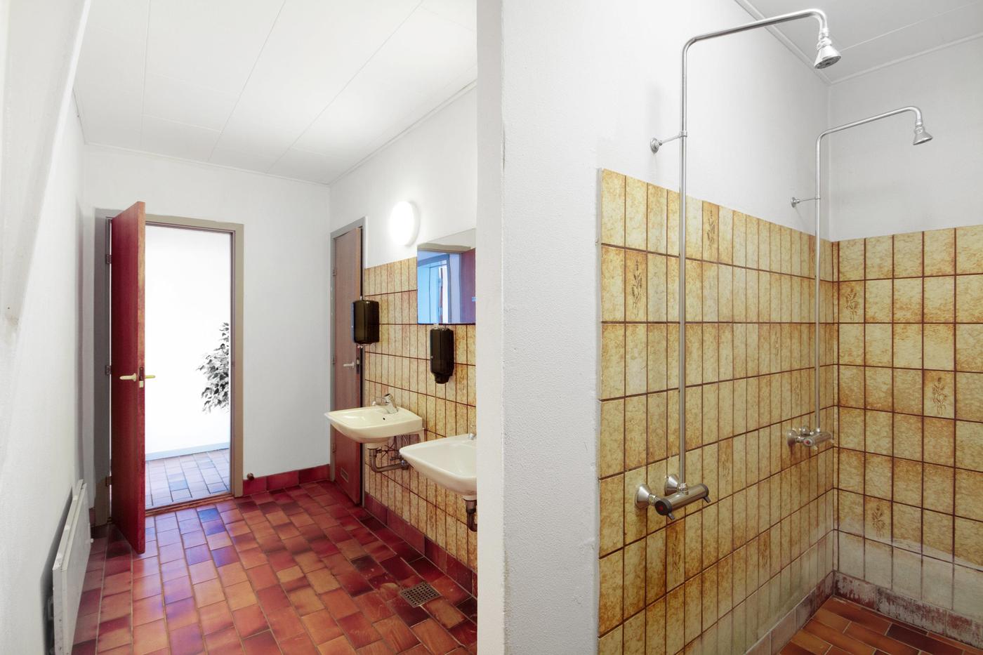 Mandskabslokalerne med omklædningsrum, bad, toilet, køkken og frokoststue.