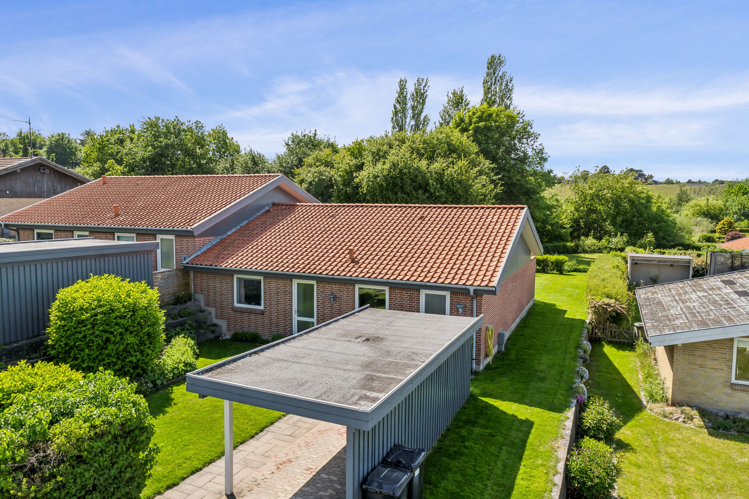 Ejendommen er et dobbelthus som udgøres af to boliger på hhv. 97 m² & 104 m², opført 1984 i gedigne materialer af lokal murermester Jørgen Madsen og har været i familiens eje siden. Boligerne er regulære og med en fornuftig indretning der giver grobund for et bredere lejer segment. Til hver bolig hører parkeringsmulighed samt mindre forhave og vestvendt baghave med terrassemiljø mm.