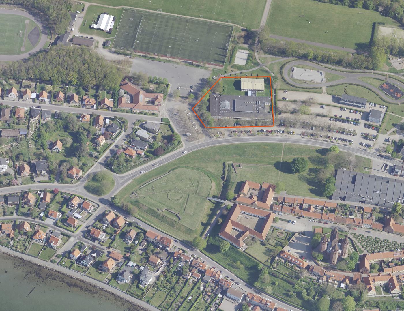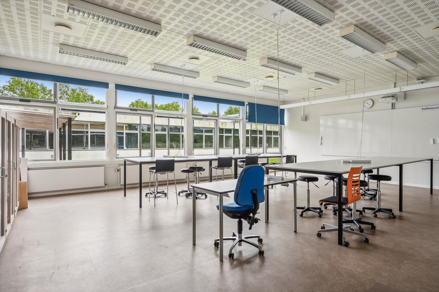 Bygningerne består af lette konstruktioner og omfatter sammenbyggede undervisningslokaler samt store, åbne fællesrum. Ejendommen er veldisponeret som undervisningsinstitution og blev oprindeligt opført i 1972 med en senere udvidelse i 1994.