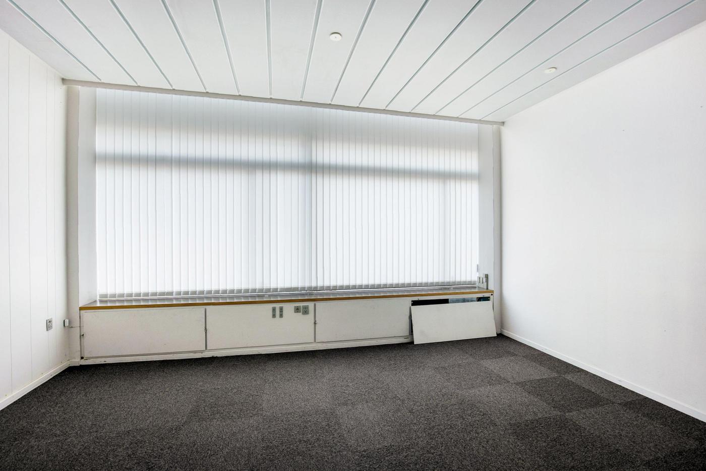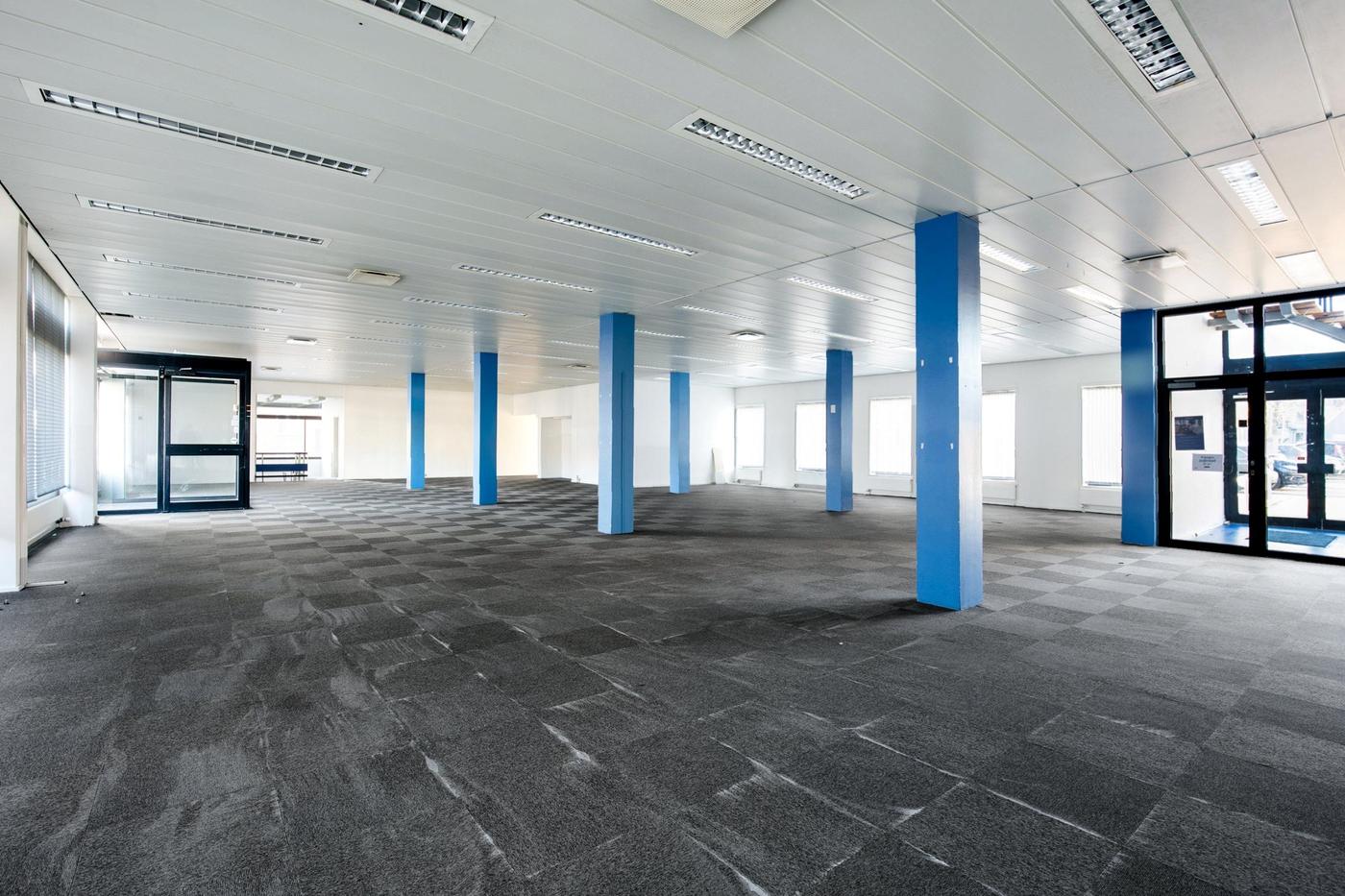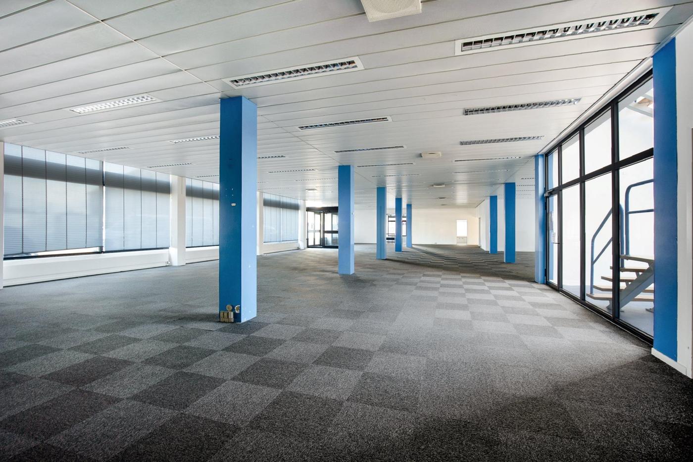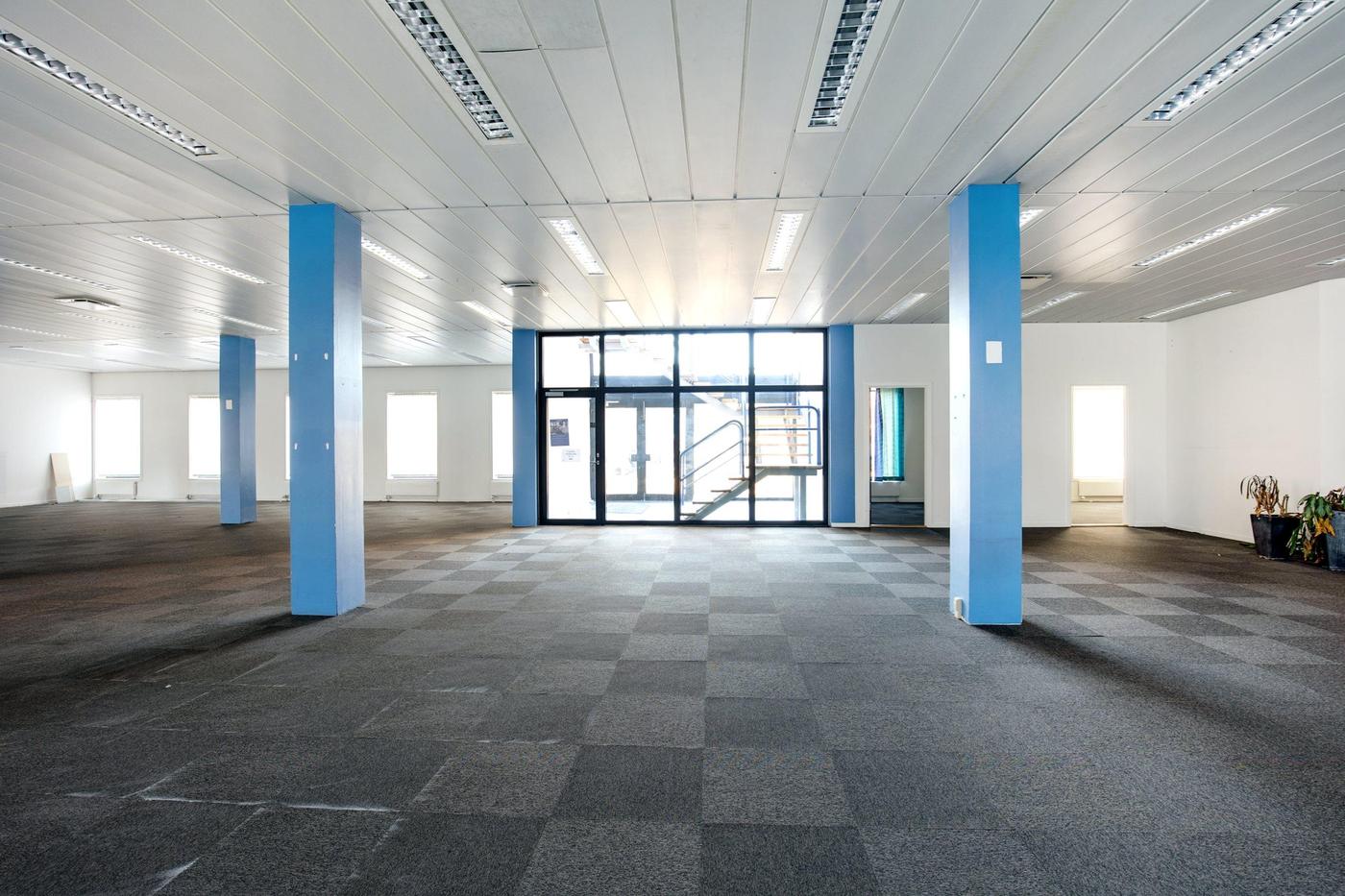 Indvendigt fremtræder lokalet fortrinsvist som et regulært storrumskontor med enkelte søjler og med personaletoilet, køkkenmulighed mv.