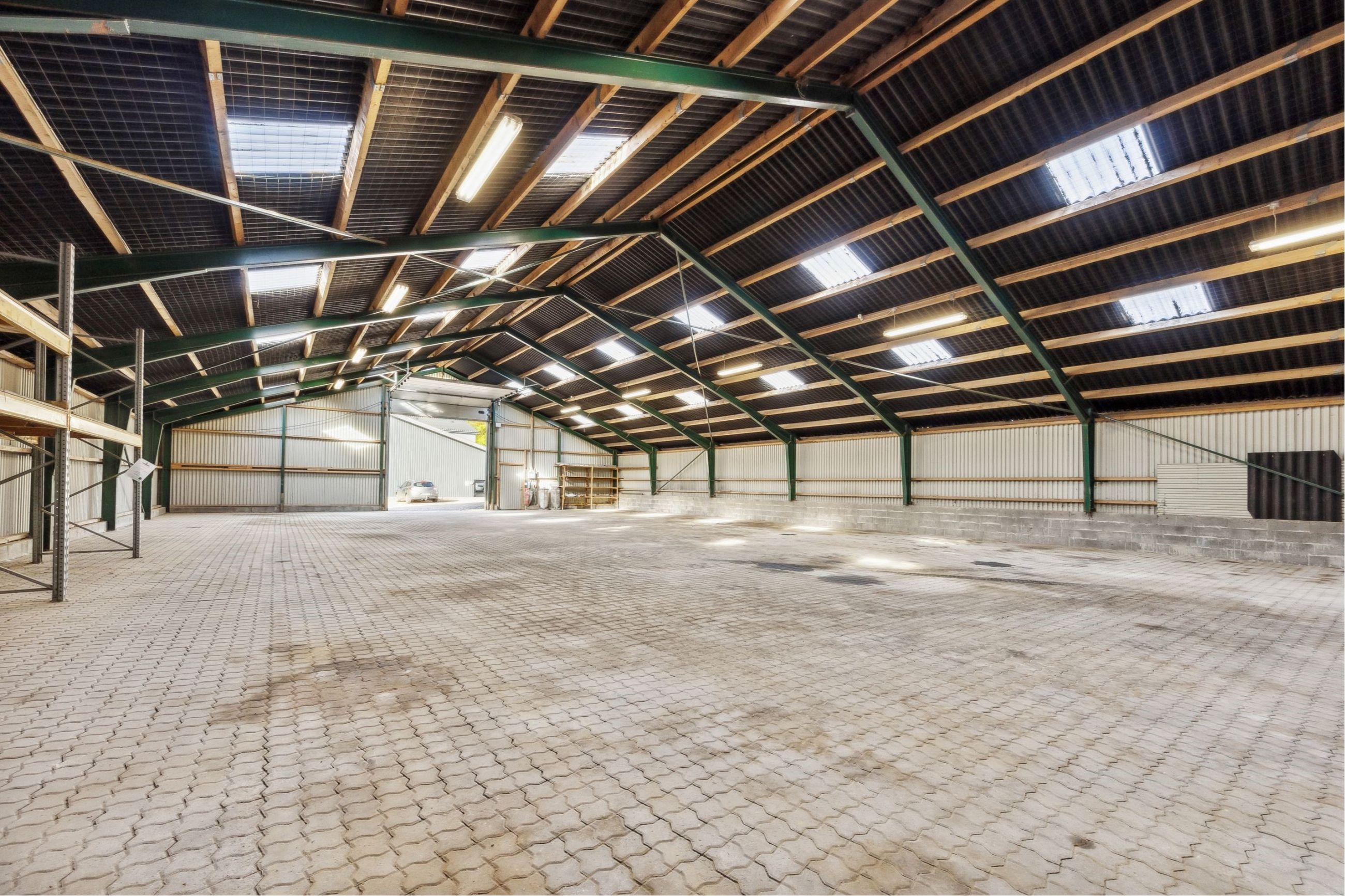 Bygningen byder på et rummeligt, højloftet og uopvarmet halareal med et stærkt befæstet gulv, der er ideelt til tunge køretøjer og lagerreoler.