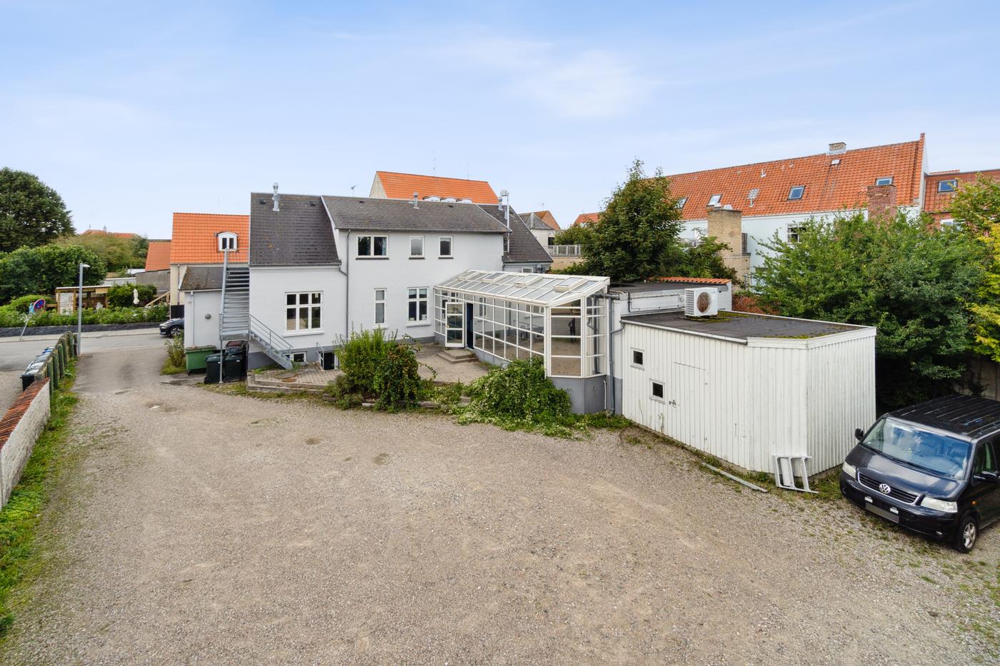 Beliggende yderst centralt i Nykøbing Sj. bymidte, lige bag byens pulserende gågade Algade med butikker, cafeer, teater m.v.
