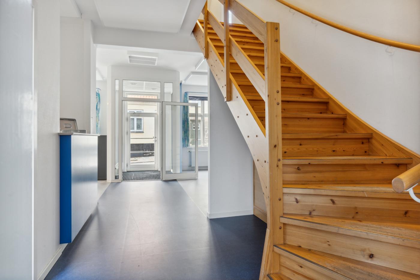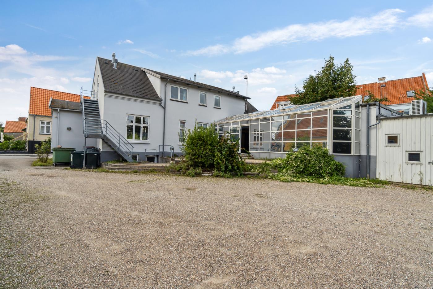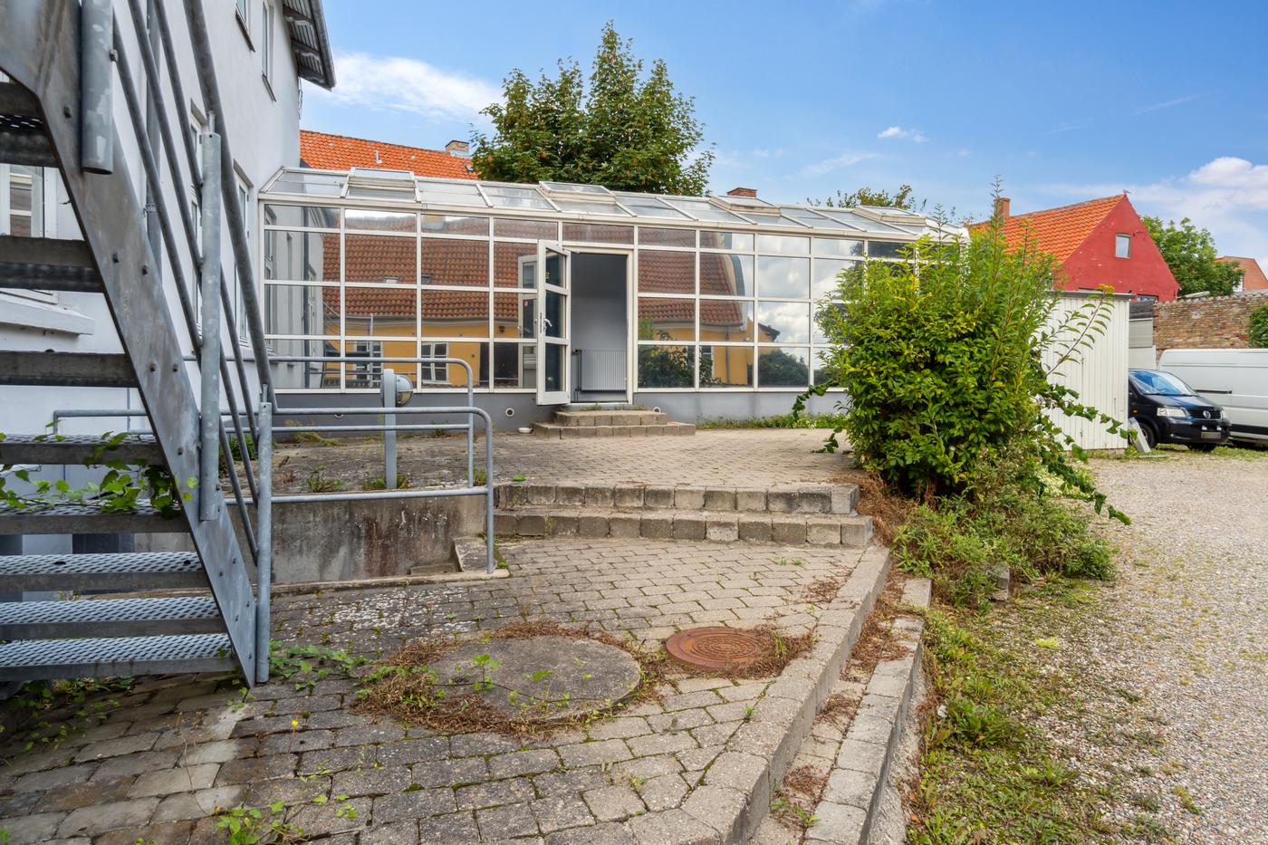 Erhvervsejendom bestående af to sammenbyggede bygninger, med forhuset mod Grønnehavestræde med indgangsparti m.v., og i vinkel sidebygning med glasfacade i gården, hvor der er yderligere en indgang, samt god parkering m.v.