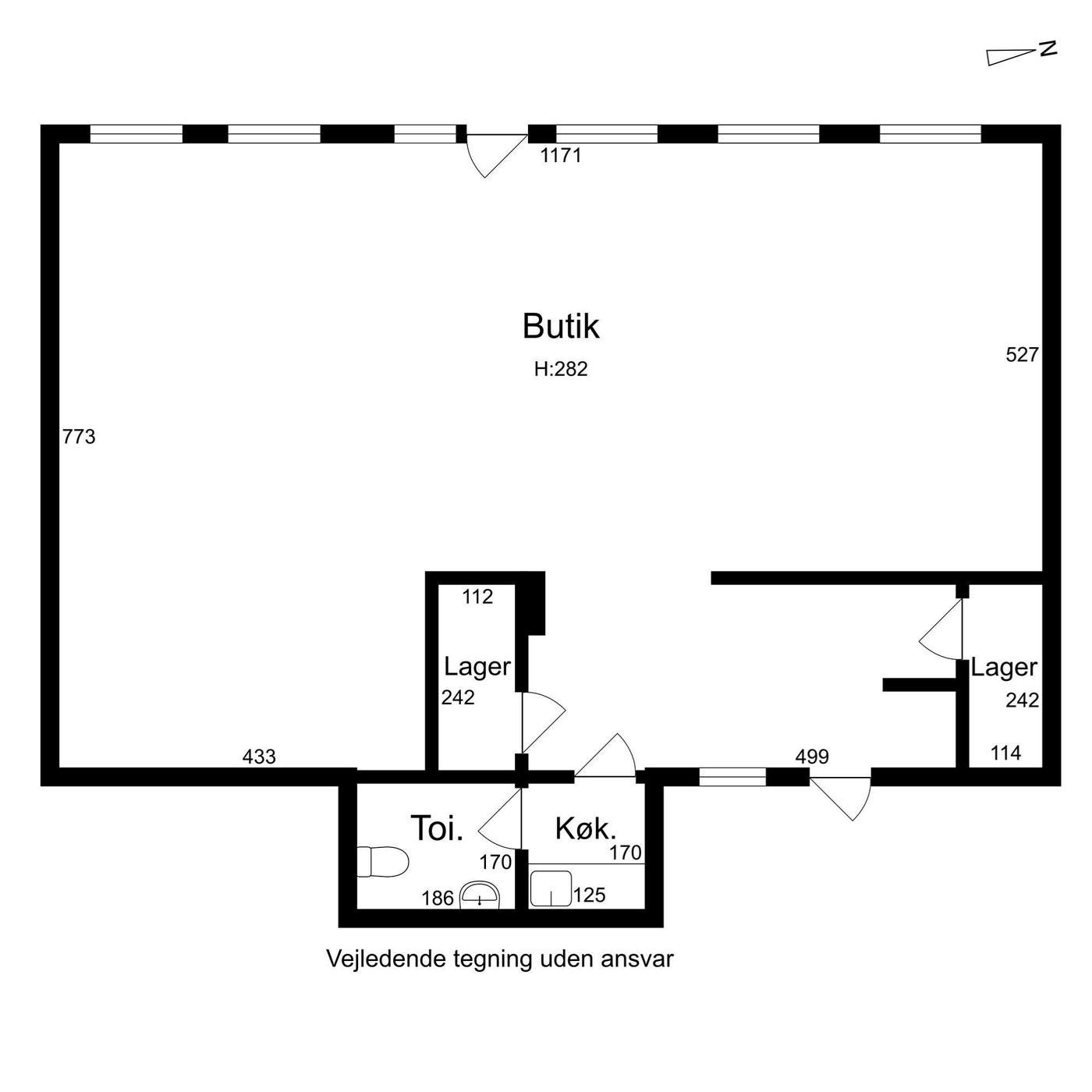 Lejemålet der er beliggende i velholdt fredet ejendom er utroligt charmerende og har en flot facade på hjørnet af Brogade og Fændediget. Mange gode udstillingsvinduer ligesom der er plads til gadestativer el.lign. foran lejemålet. Lejemålet overtages nymalet, og der er fine trægulve under eksisterende gulve og repos kan fjernes, derfor er der sat nogle gamle billeder ind, så man kan se dette.