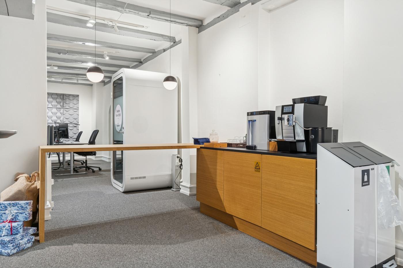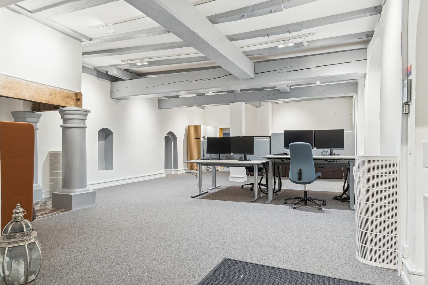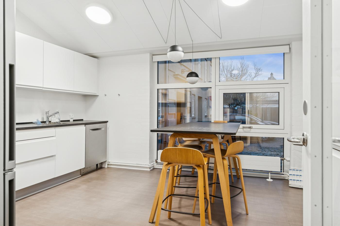 Lejemålet fremstår lyst, venligt og elegant - med charmerende detaljer, synlige bjælker og et gennemført udtryk, der respekterer ejendommens oprindelse og historie. Lokalerne er løbende vedligeholdt og istandsat, og der er installeret et nyere ventilationsanlæg, som sikrer et behageligt og sundt indeklima året rundt.