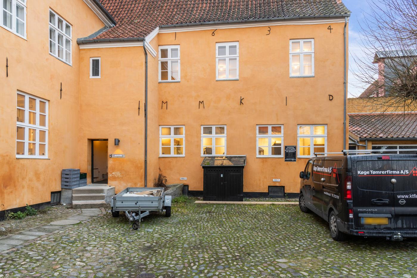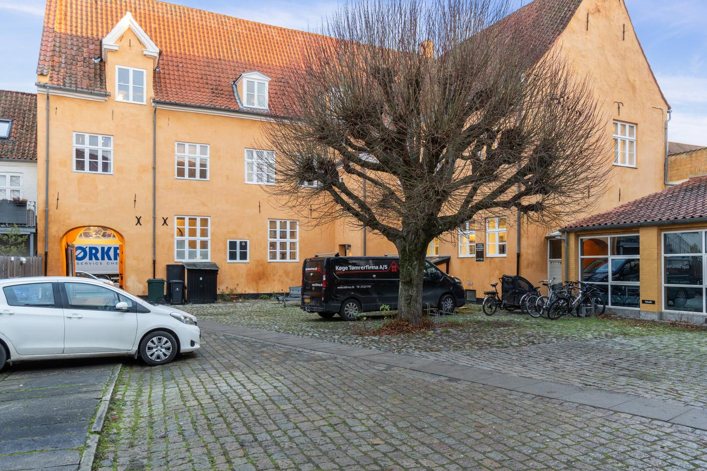Der er mulighed for parkering i gården efter nærmere aftale, hvilket er en sjælden og attraktiv fordel i det centrale Køge.
