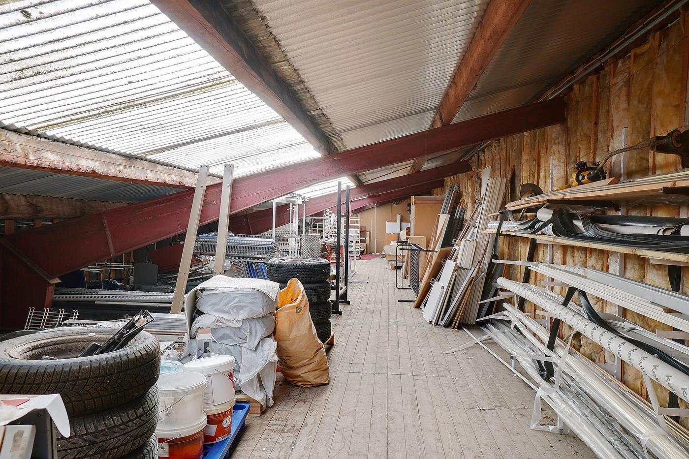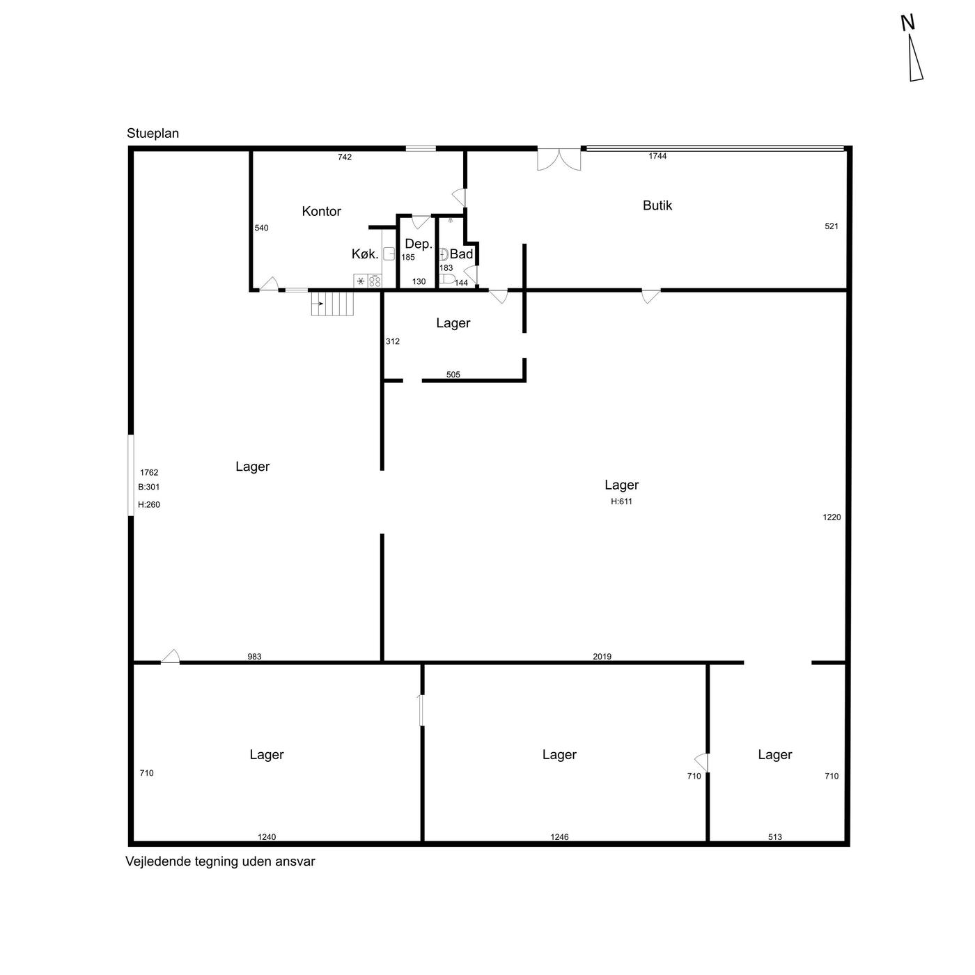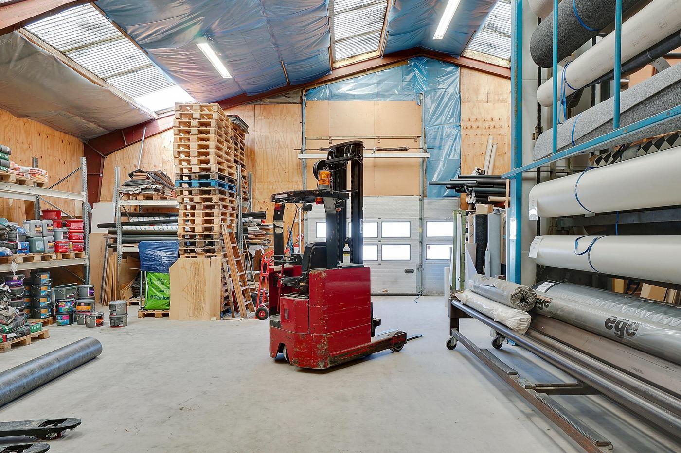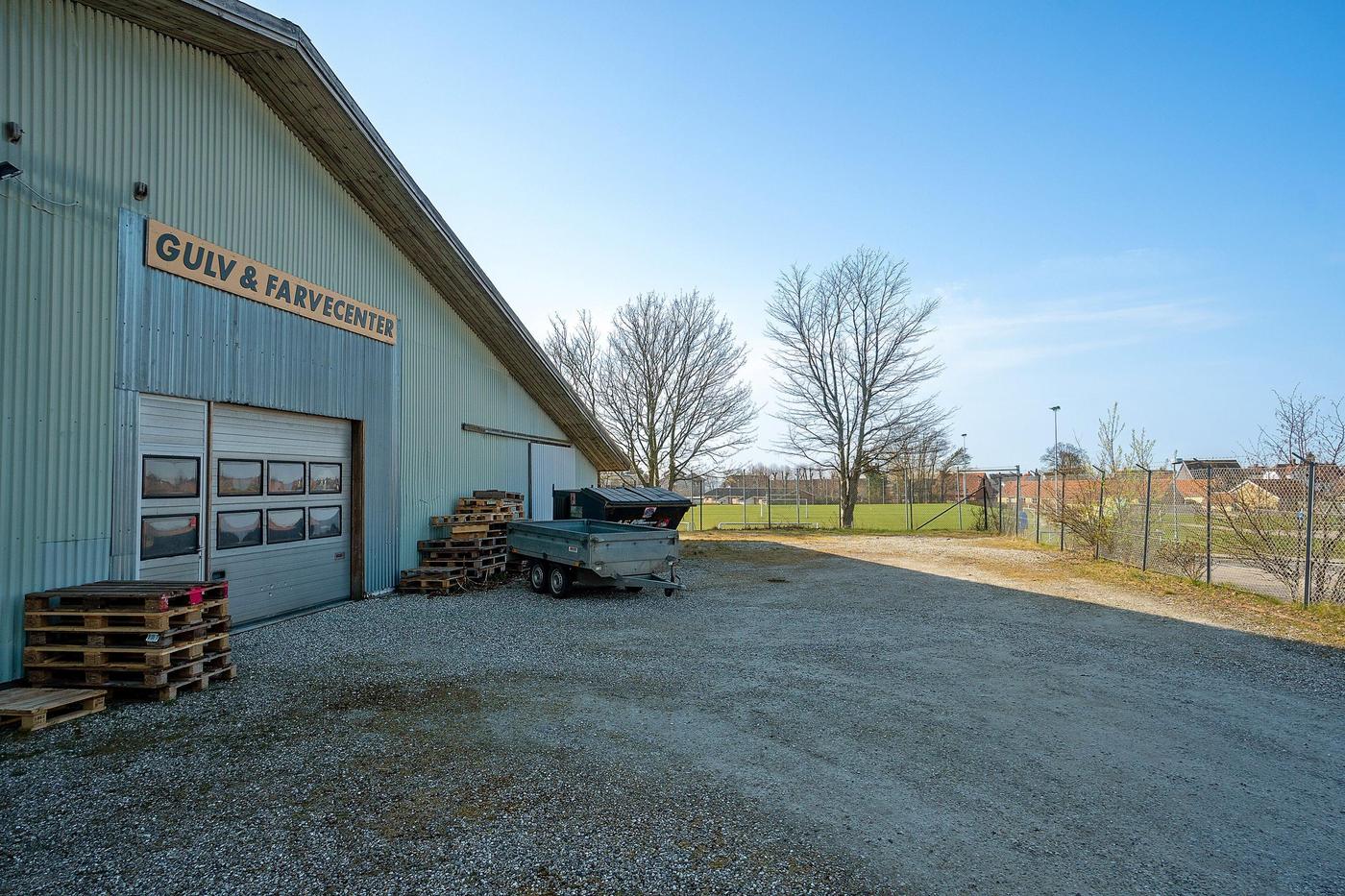 Ejendommen er indrettet mindre butik/udstilling, kontor med frokoststue og toilet. Fra butikken er der udgang til isoleret og opvarmet lager, der er delt op i flere mindre rum, som let kan gøres større efter eget ønske. Der er 6 meter til loft, gulvet er beton samt port i begge gavle.