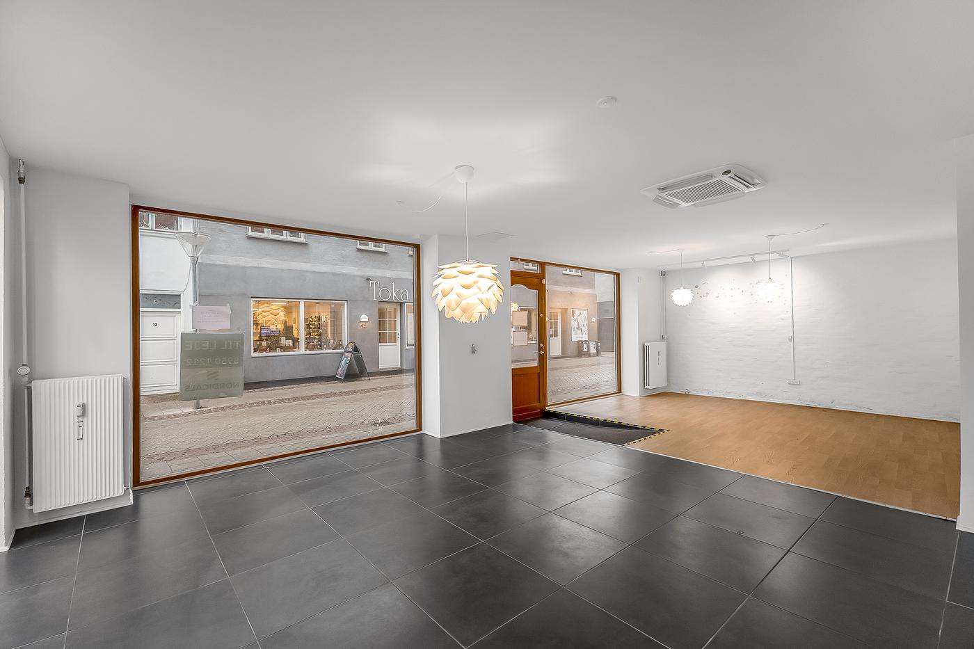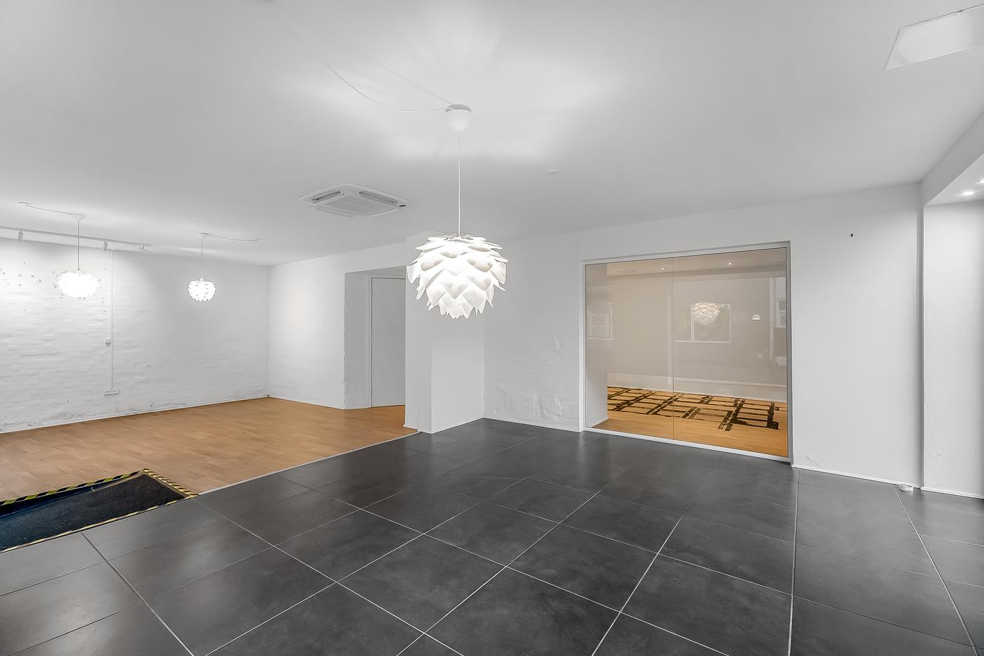 Lejemålet indeholder et stort rum med vinduer på to sider, hvilket giver et godt lysindfald og gode muligheder for udstilling. Derudover er der et rum mere, toilet og køkken.