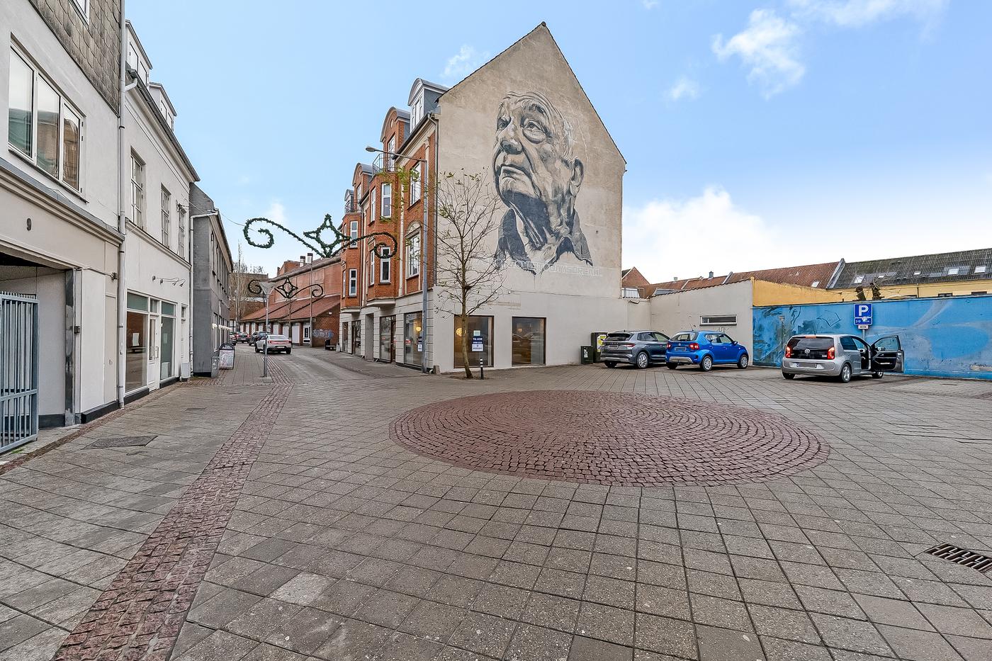 Der er korttidsparkering ved siden af lejemålet og større offentlig parkeringsplads indenfor 5 min. gang.