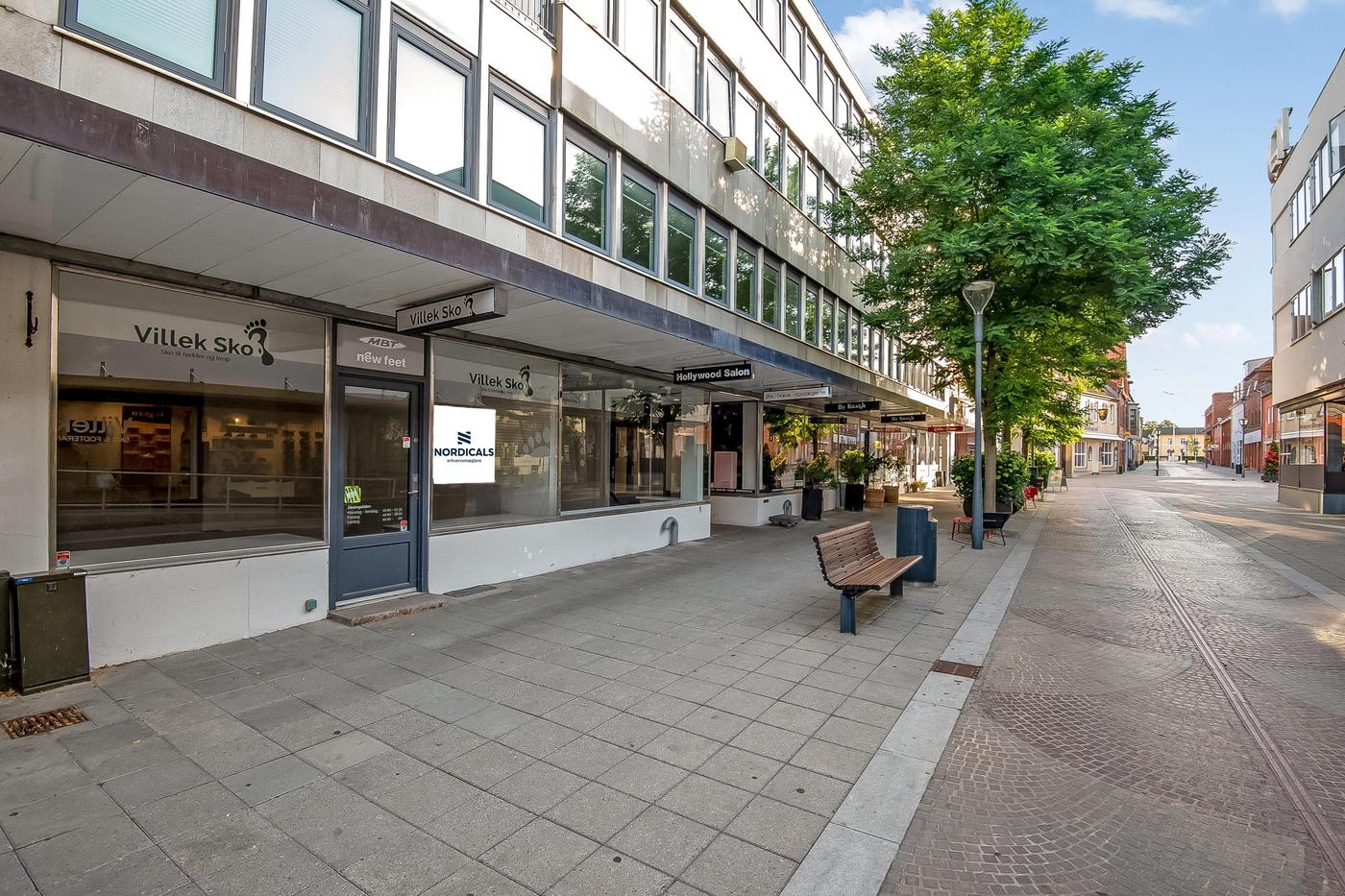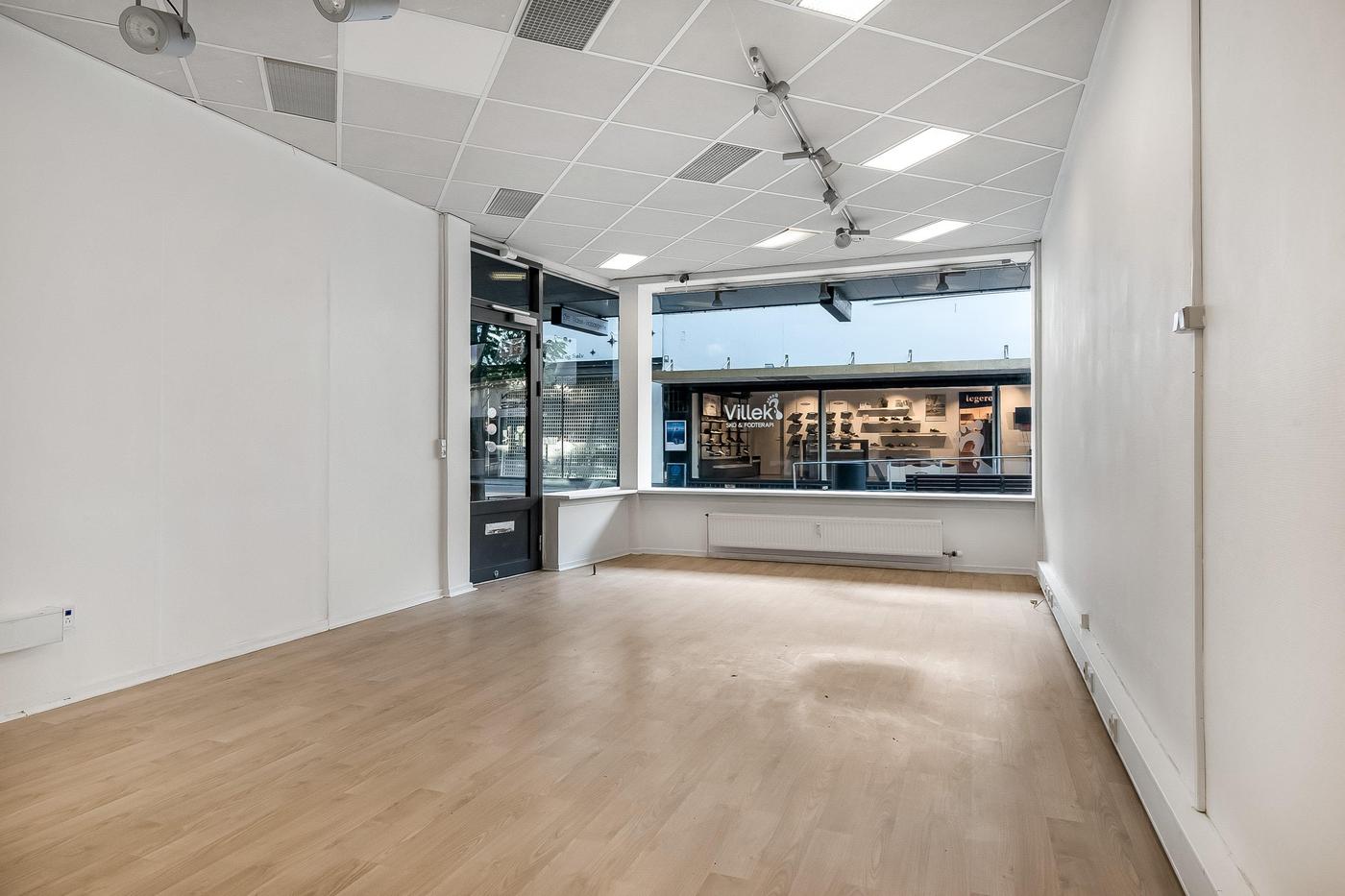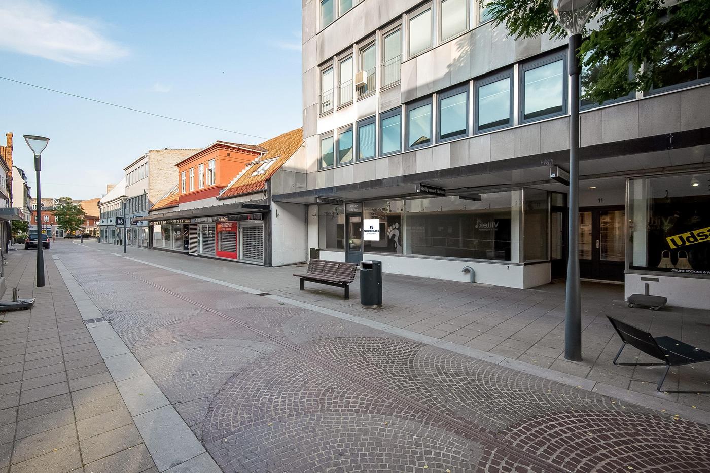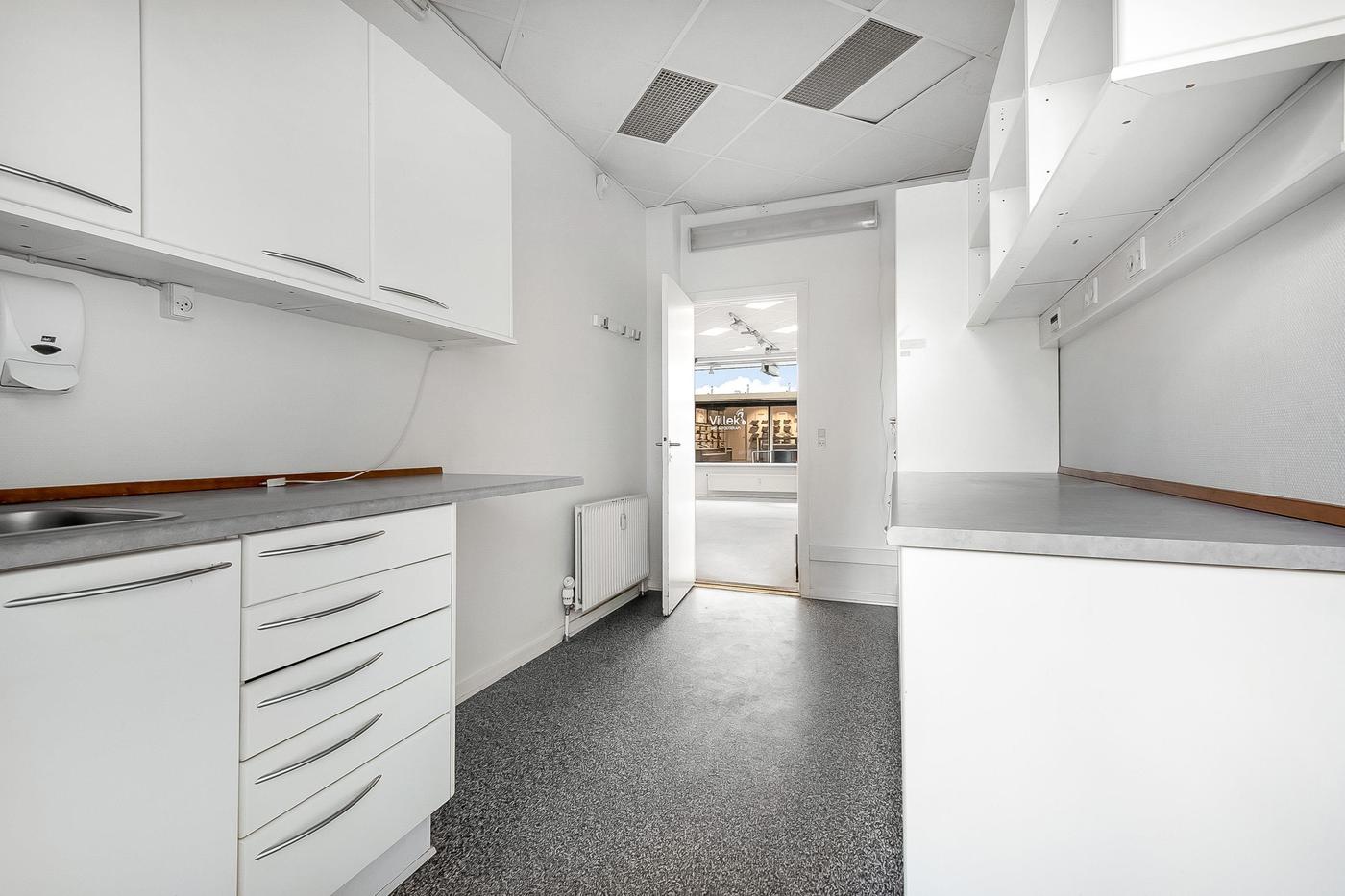 Lejemålet er på 68 m² og indeholder et reguleret salgslokale med hvide vægge og fint træ laminatgulv. Herudover er der et tekøkken og toilet til lejemålet. Der er gode udstillingsmuligheder i det butiksvindue som vender ud mod gågaden.