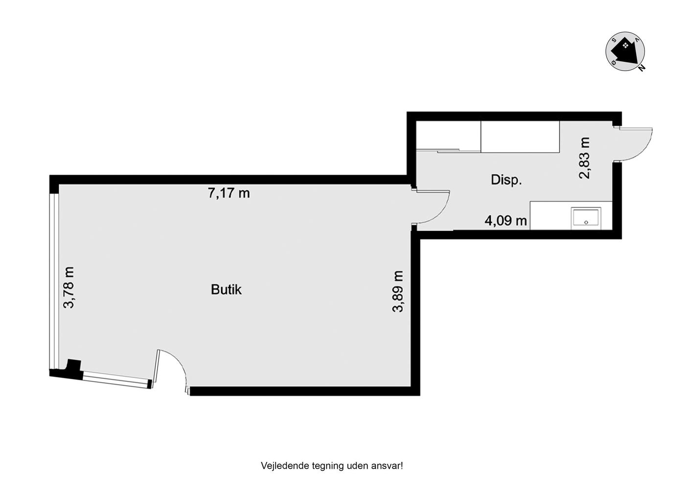Selve lejemålet er et lyst mindre lokale som er oplagt til flere forskellige brancher. Der et stort vinduesparti som giver god synlighed og god mulighed for udstilling.
