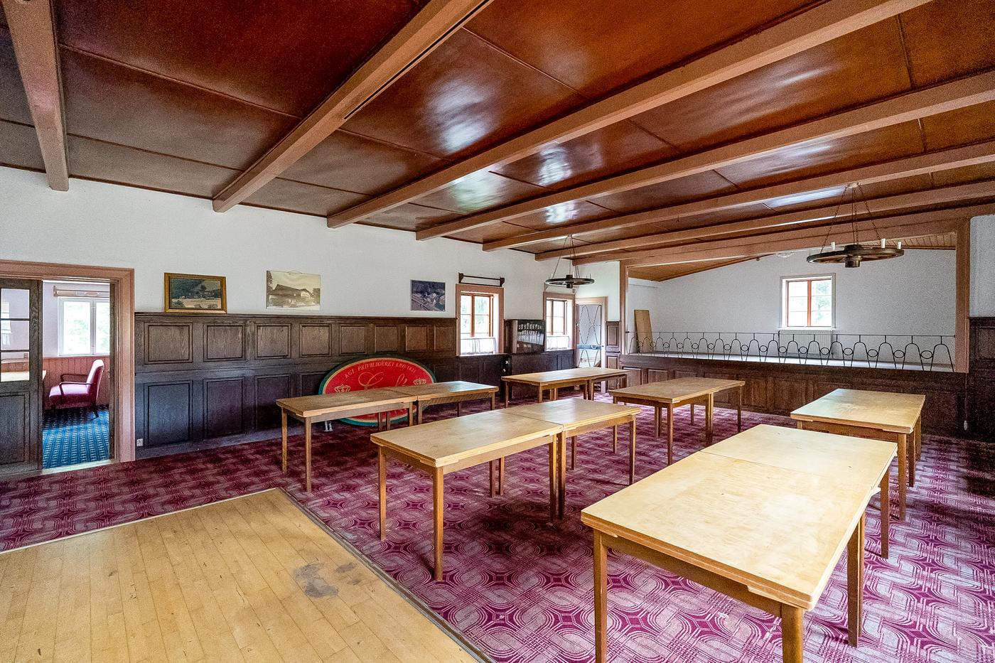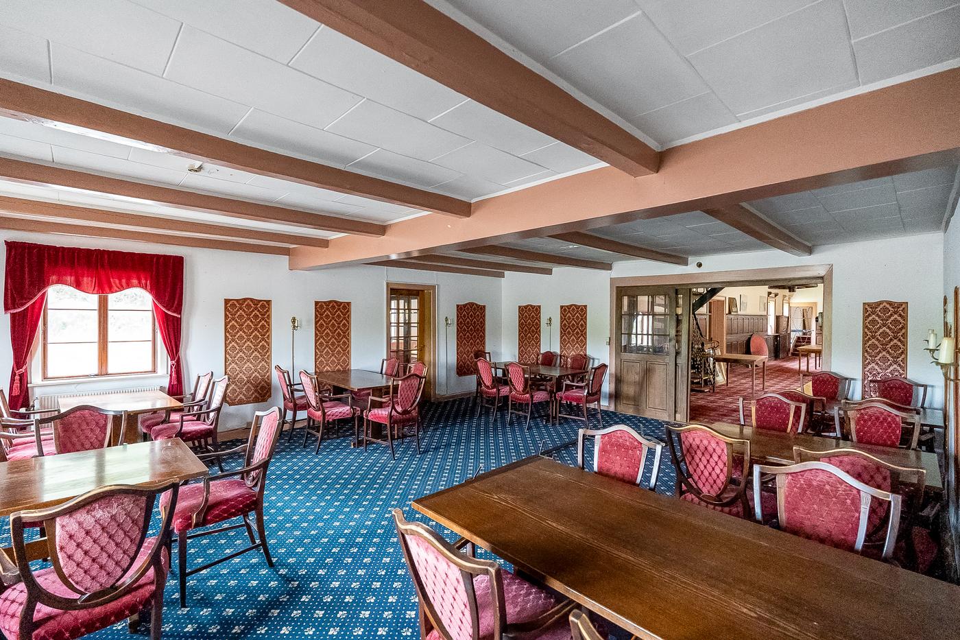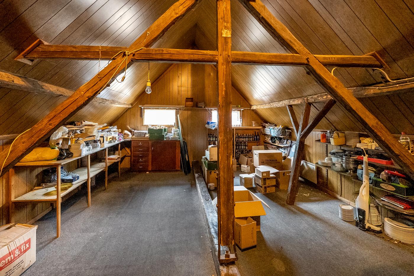 Ejendommen indeholder en masse forskellige rum, og i hovedbygningen er bl.a. en krostue, et større lokale til fester med en lille scene og bar samt et industrikøkken med dertil hørende opbevaringsmuligheder. På 1 sal af hovedbygningen er der indrettet en bolig, som fremstår i ældre stand, men er brugbar.
